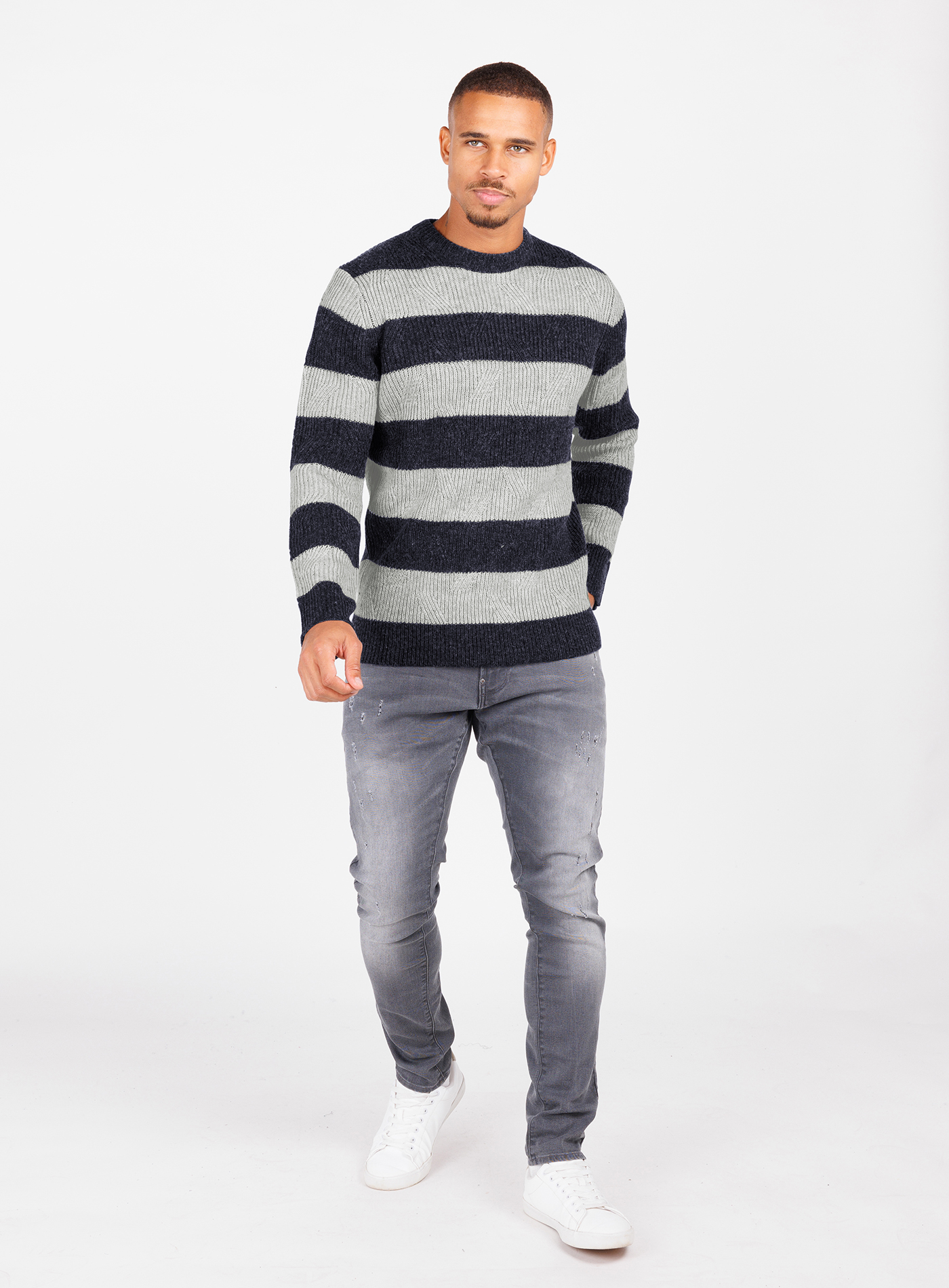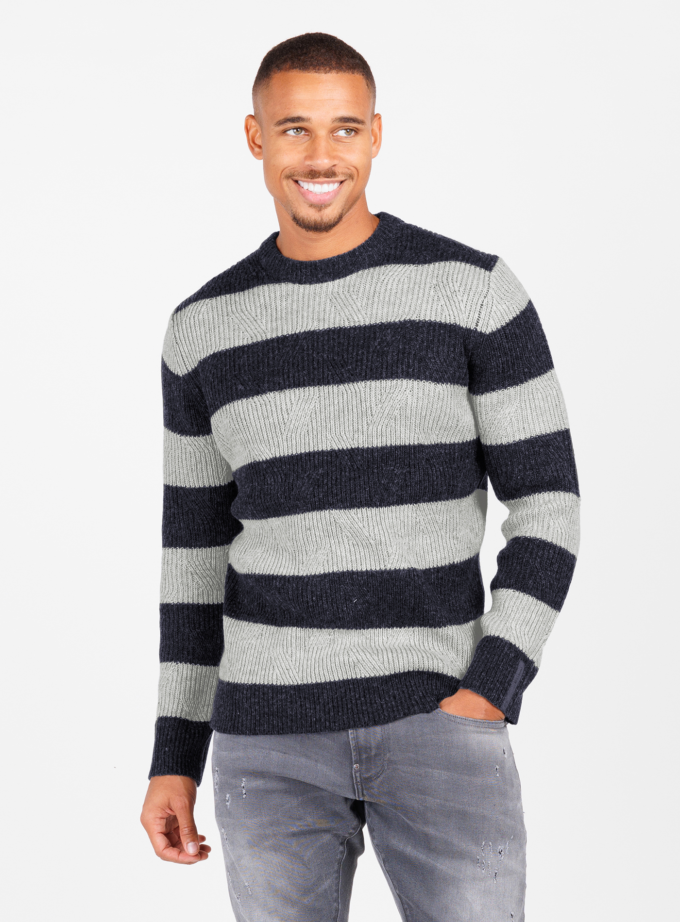 Modischer Strickpullover der Marke KEY LARGO für Herren. Er weiß mit seiner gestreiften Optik und dem diagonal verlaufenden Muster zu überzeugen.