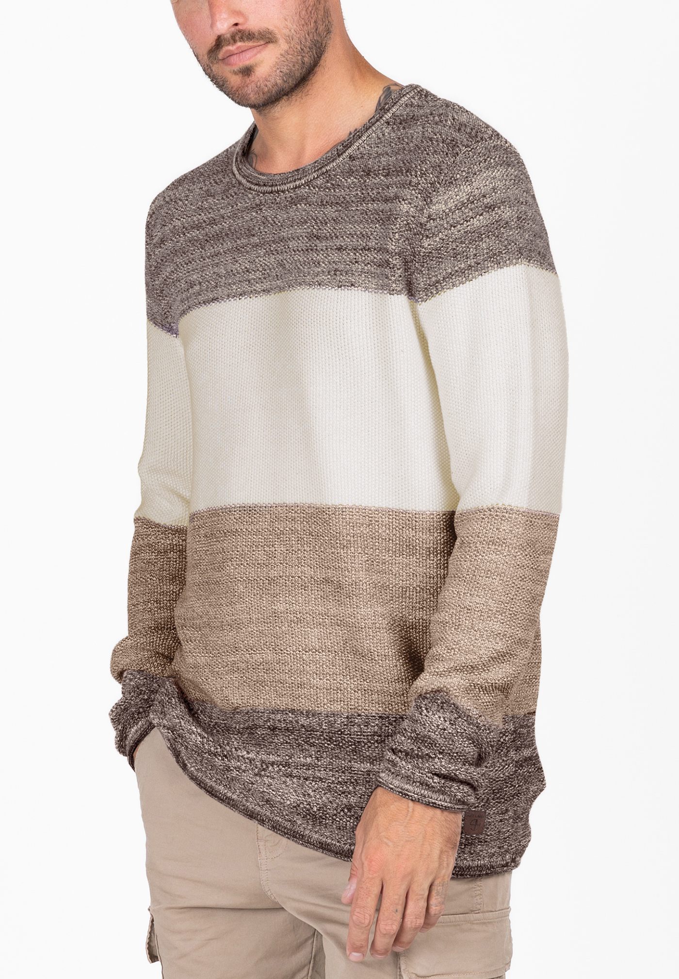 einem Must-Have für jede Jahreszeit. Dieser stylische Rundhalspullover mit Blockstreifen