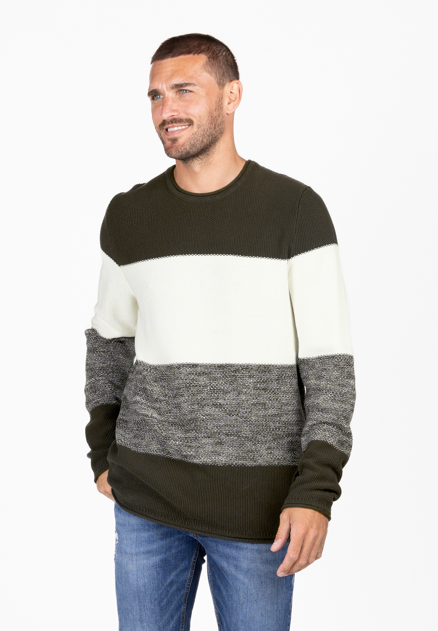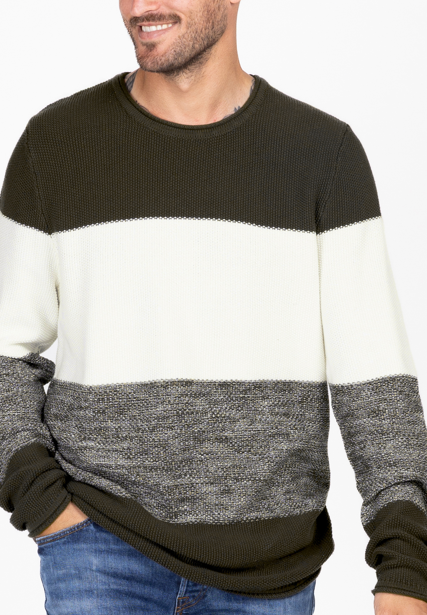 einem Must-Have für jede Jahreszeit. Dieser stylische Rundhalspullover mit Blockstreifen