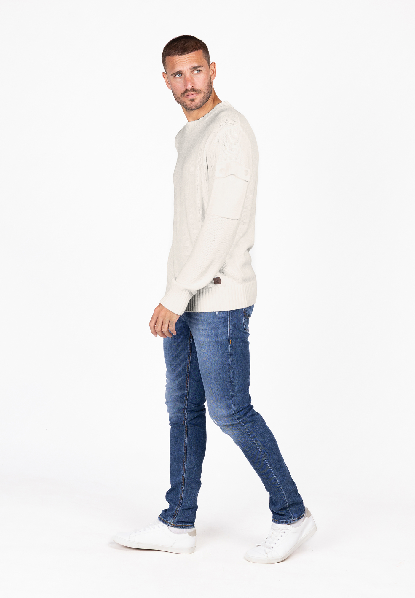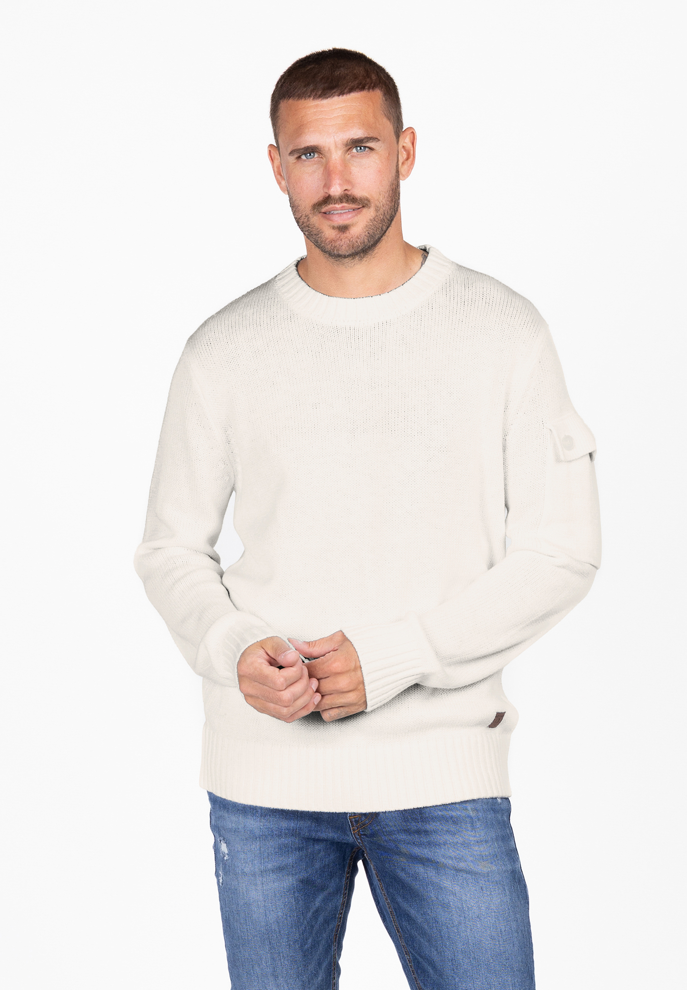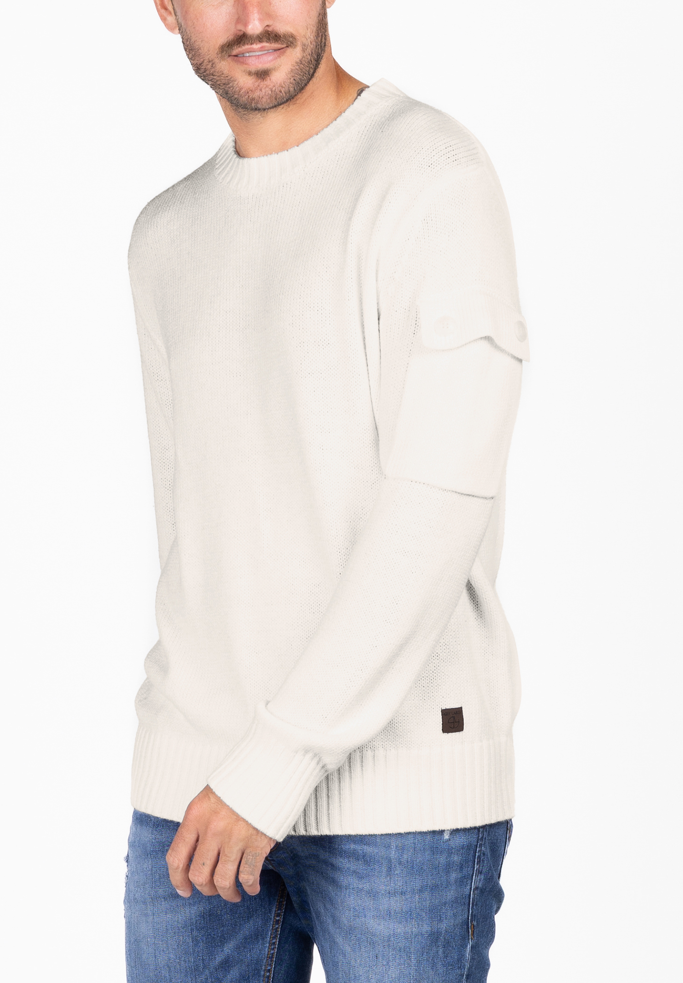- Zeitloser Rundhals-Schnitt trifft auf modische Utility-Tasche am Ärmel ein cooles Detail mit Statement-Charakter.