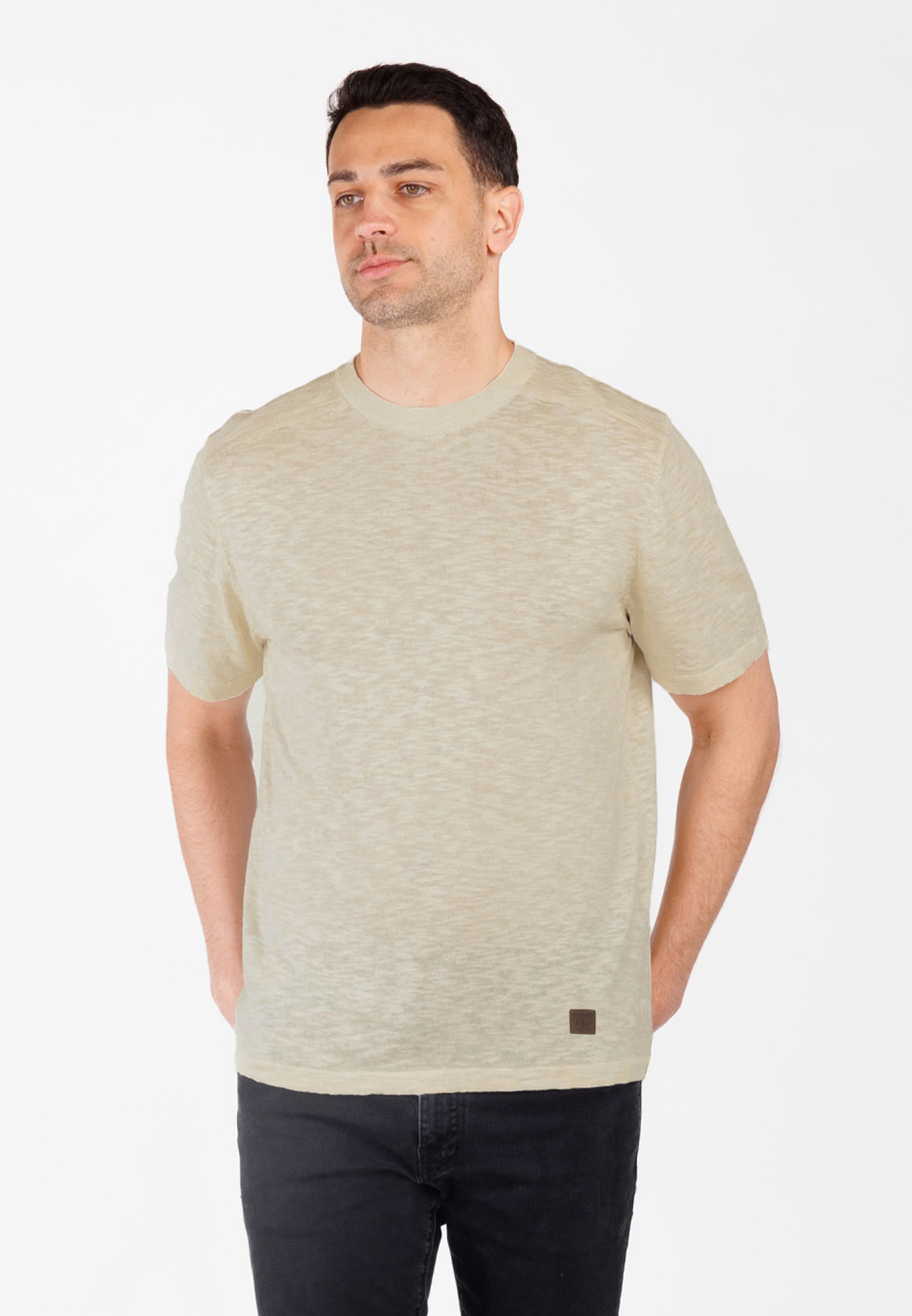 - Minimalistisches Design: Die schlichte Leder-Applikation setzt einen edlen Akzent und macht das T-Shirt vielseitig kombinierbar.