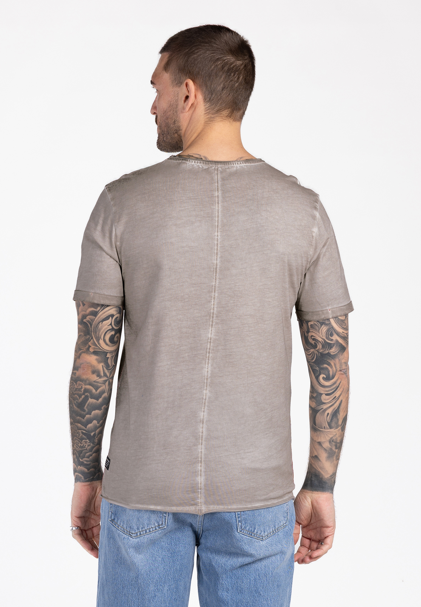 Der gewollte Used-Washed-Effekt verleiht dem Shirt einen authentischen Vintage-Charakter,