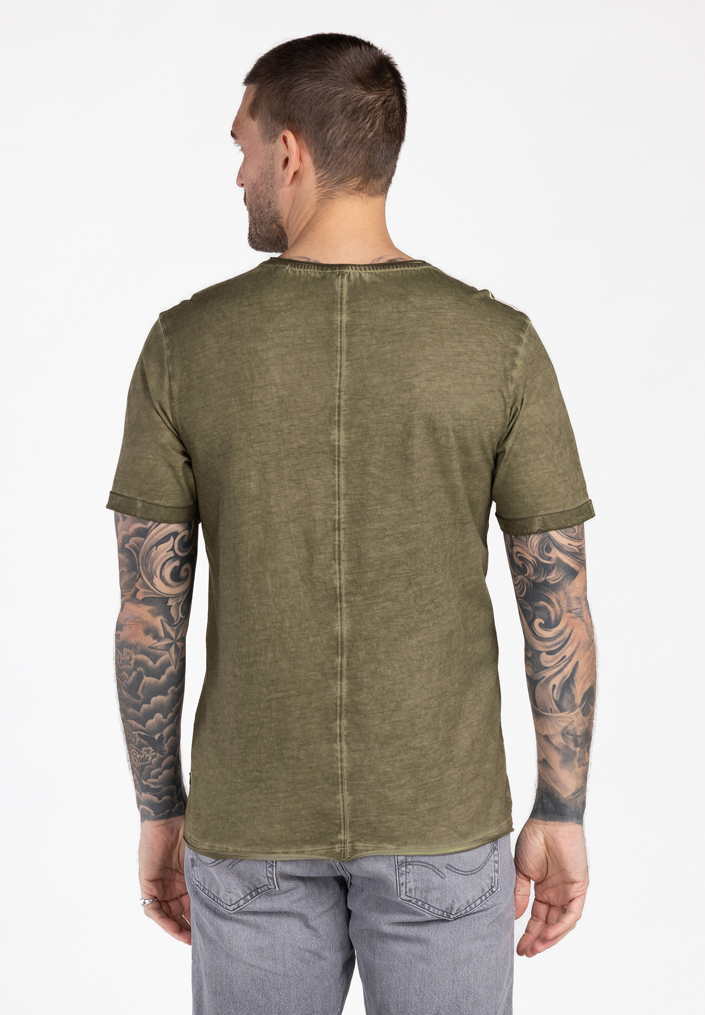 Der gewollte Used-Washed-Effekt verleiht dem Shirt einen authentischen Vintage-Charakter,