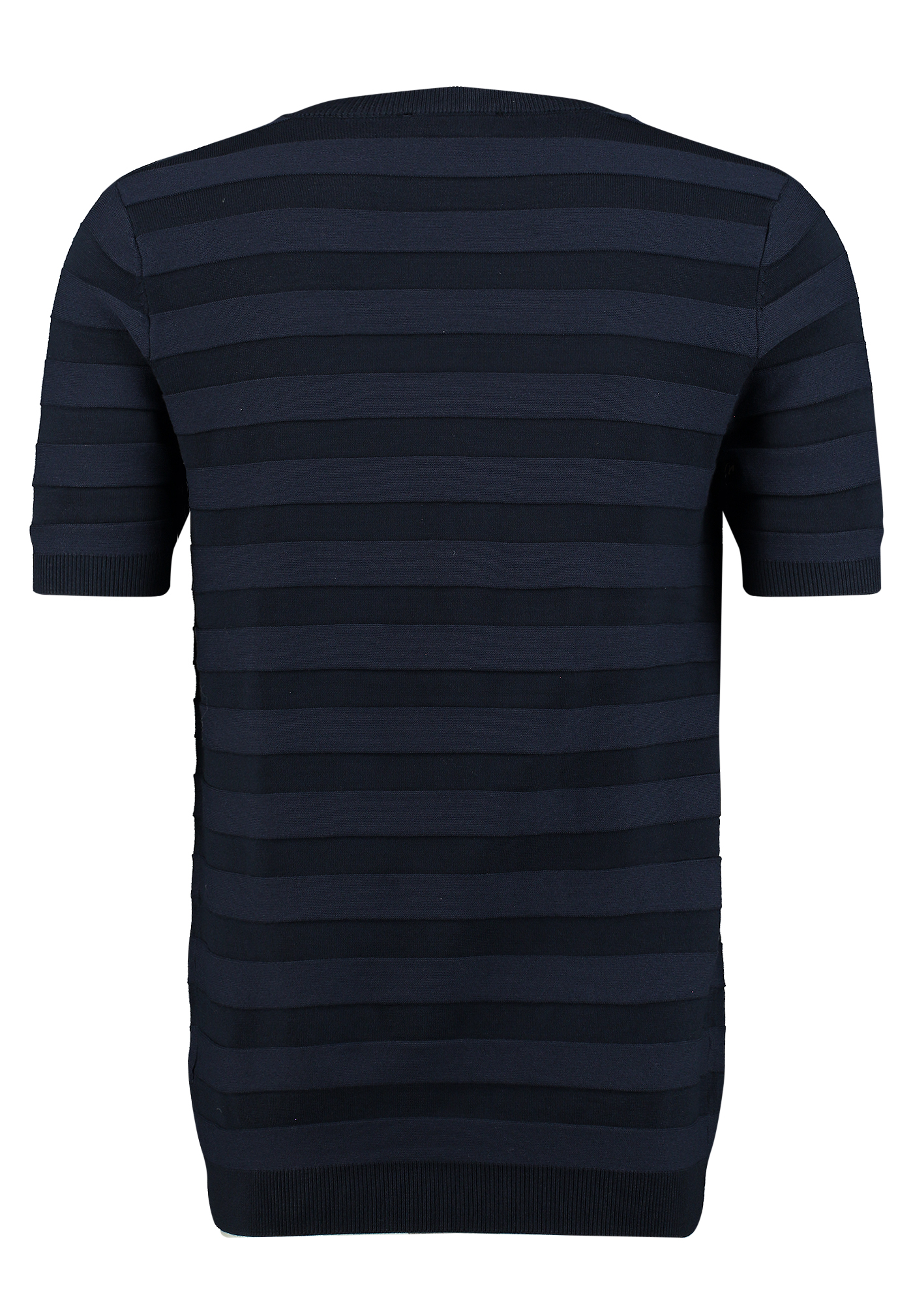 - Strukturierte Details: Die feine Streifenstruktur hebt das Shirt von klassischen Basics ab und sorgt für einen einzigartigen Look.