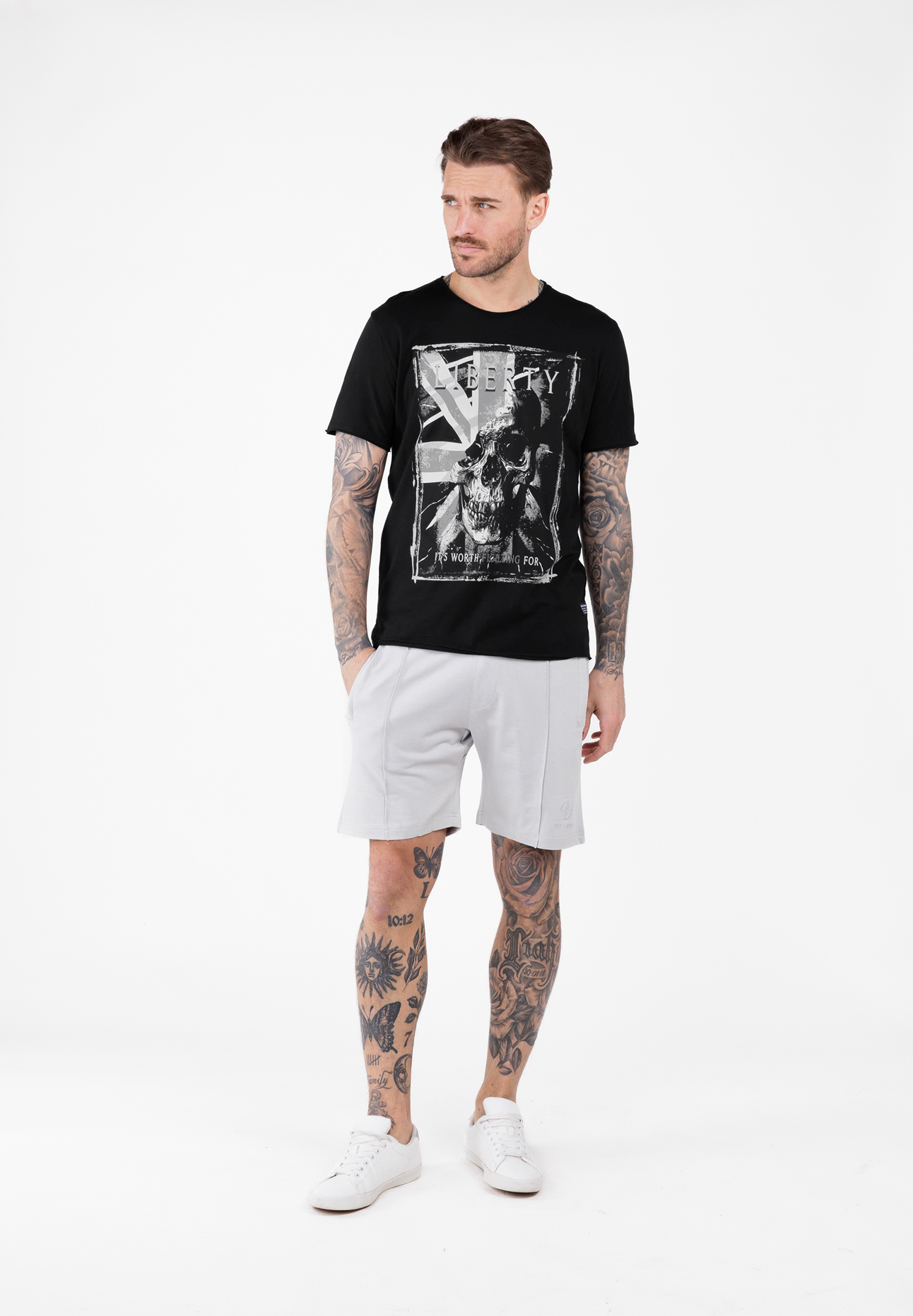 - Design: Klassisches Rundhals-T-Shirt mit ansprechenden Prints auf der Brust und Rücken, der das Design abrundet und dem Shirt eine besondere Note verleiht.