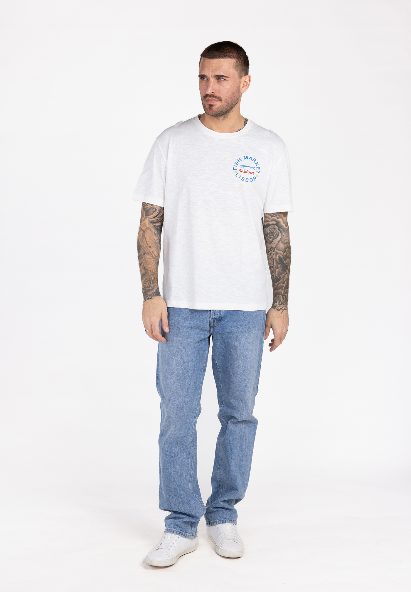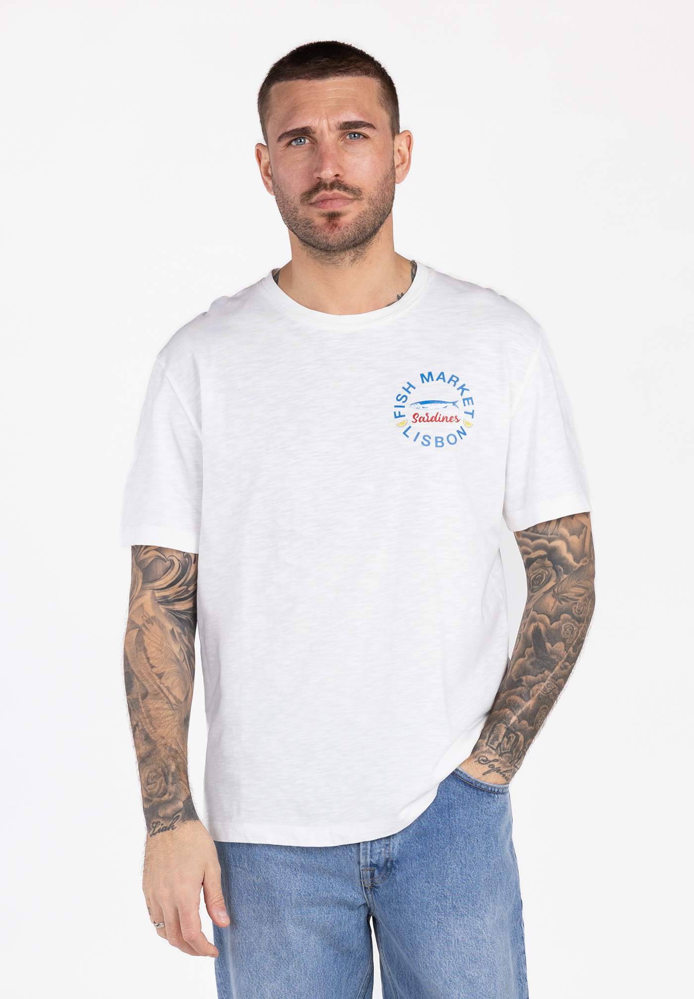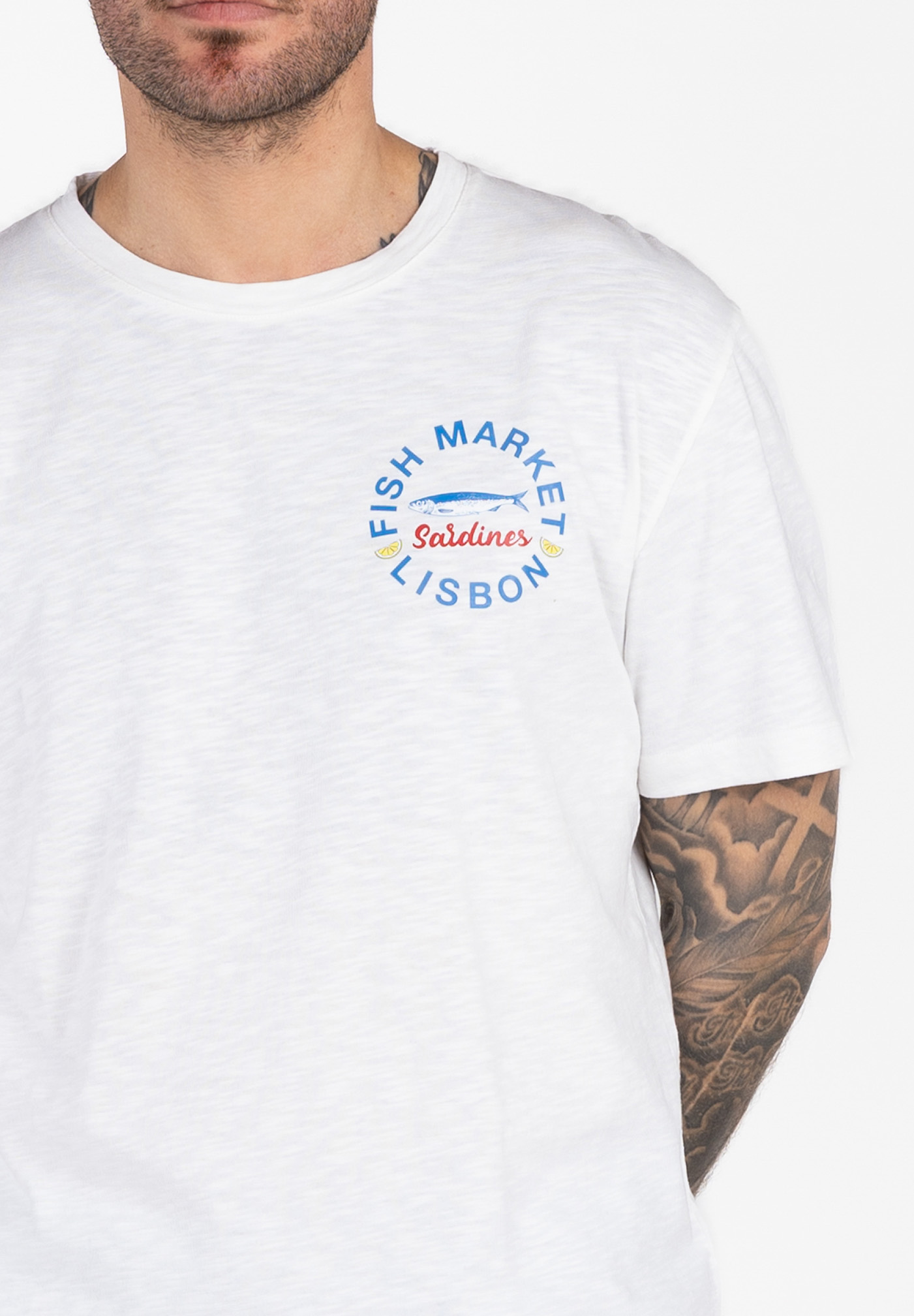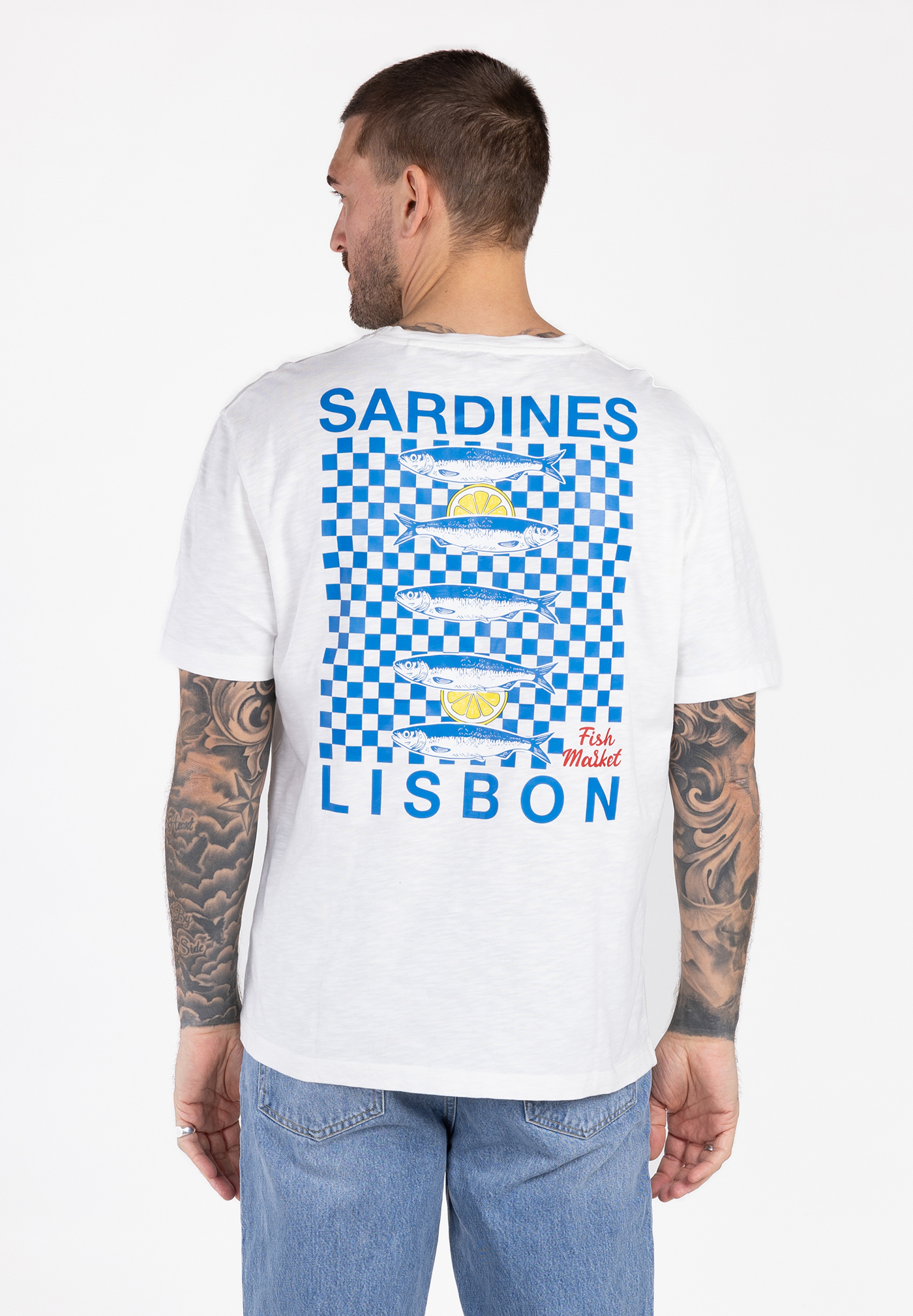 Mit seinem markanten Rückenprint erinnert das Shirt an portugiesische Küstenstädte und sonnige Sommertage.