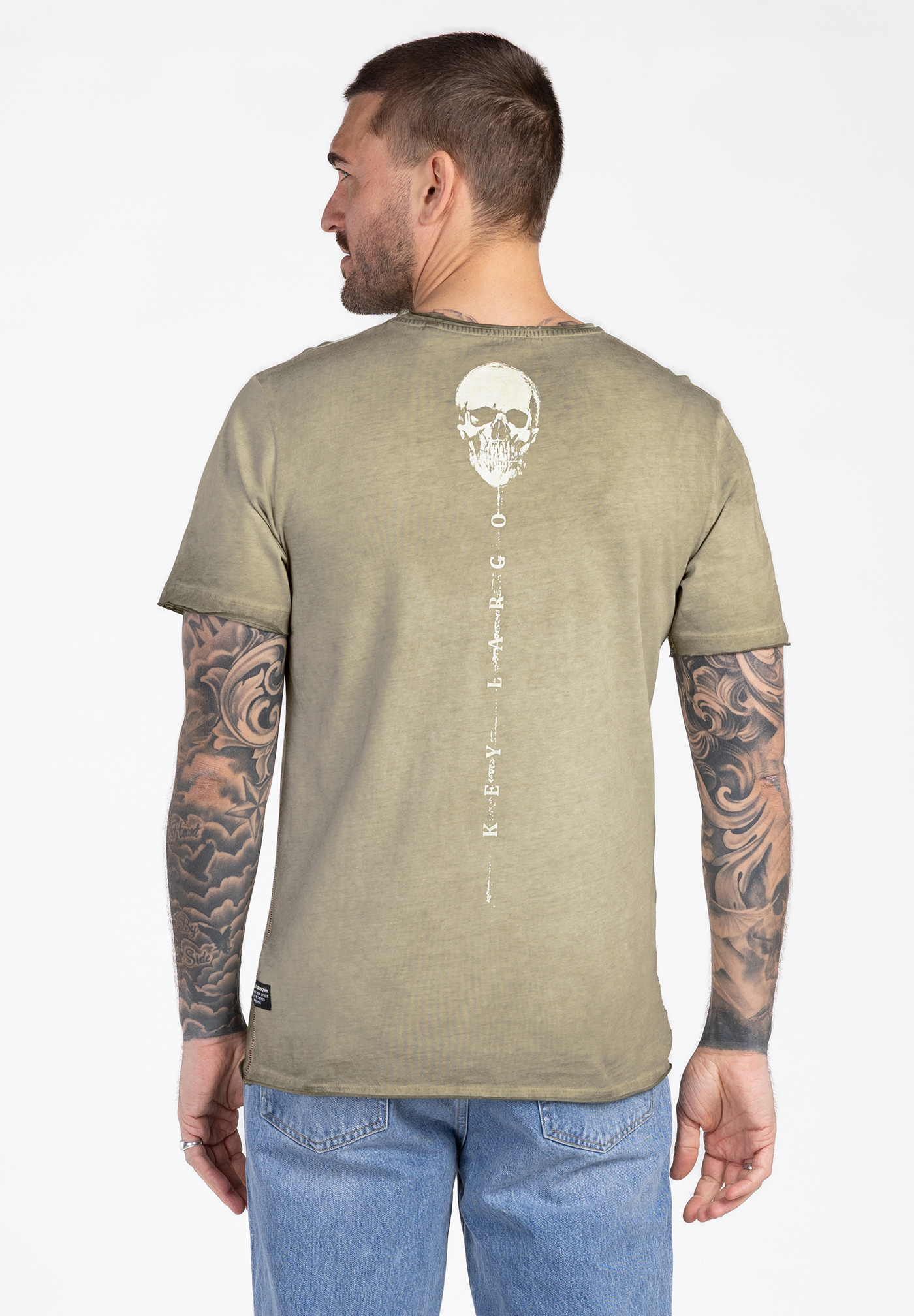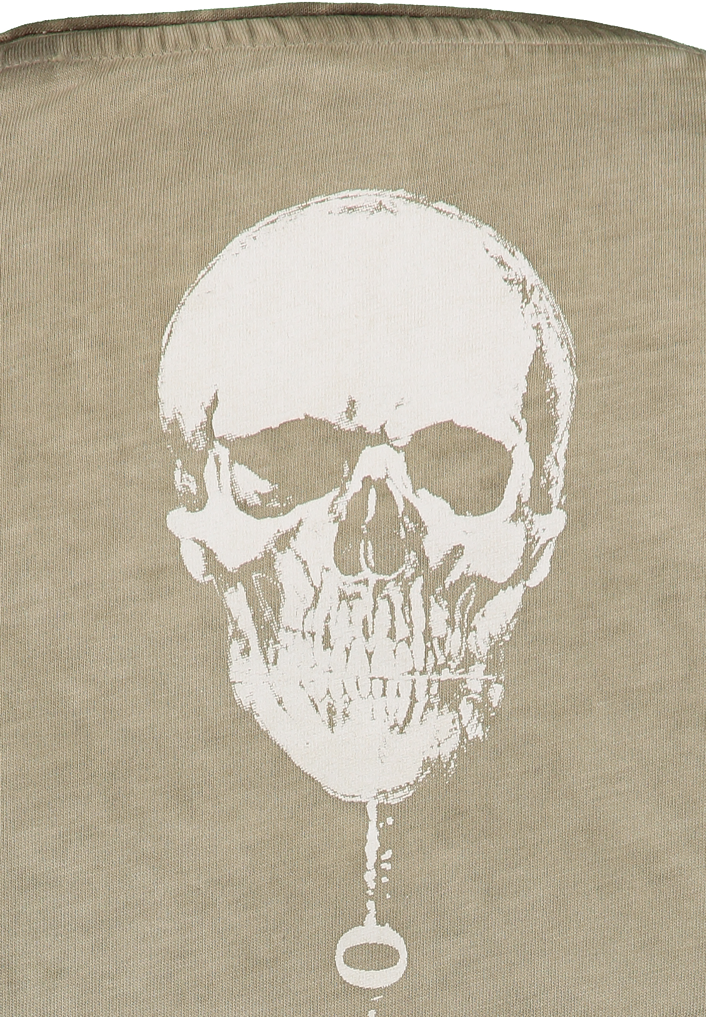 Der zusätzliche Rückenprint mit vertikalem Totenkopf-Detail verleiht dem Shirt einen individuellen und rebellischen Charakter.