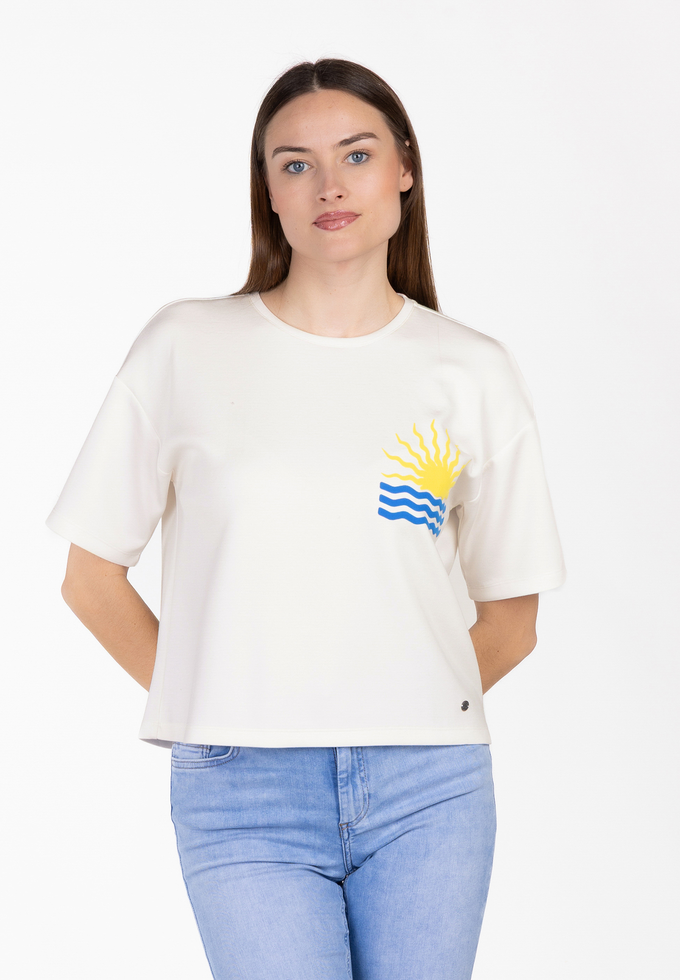 Frontprint in Brusttaschen-Optik: Kleine Sonne-Wellen-Grafik wirkt frisch und modern. Großer... mehr