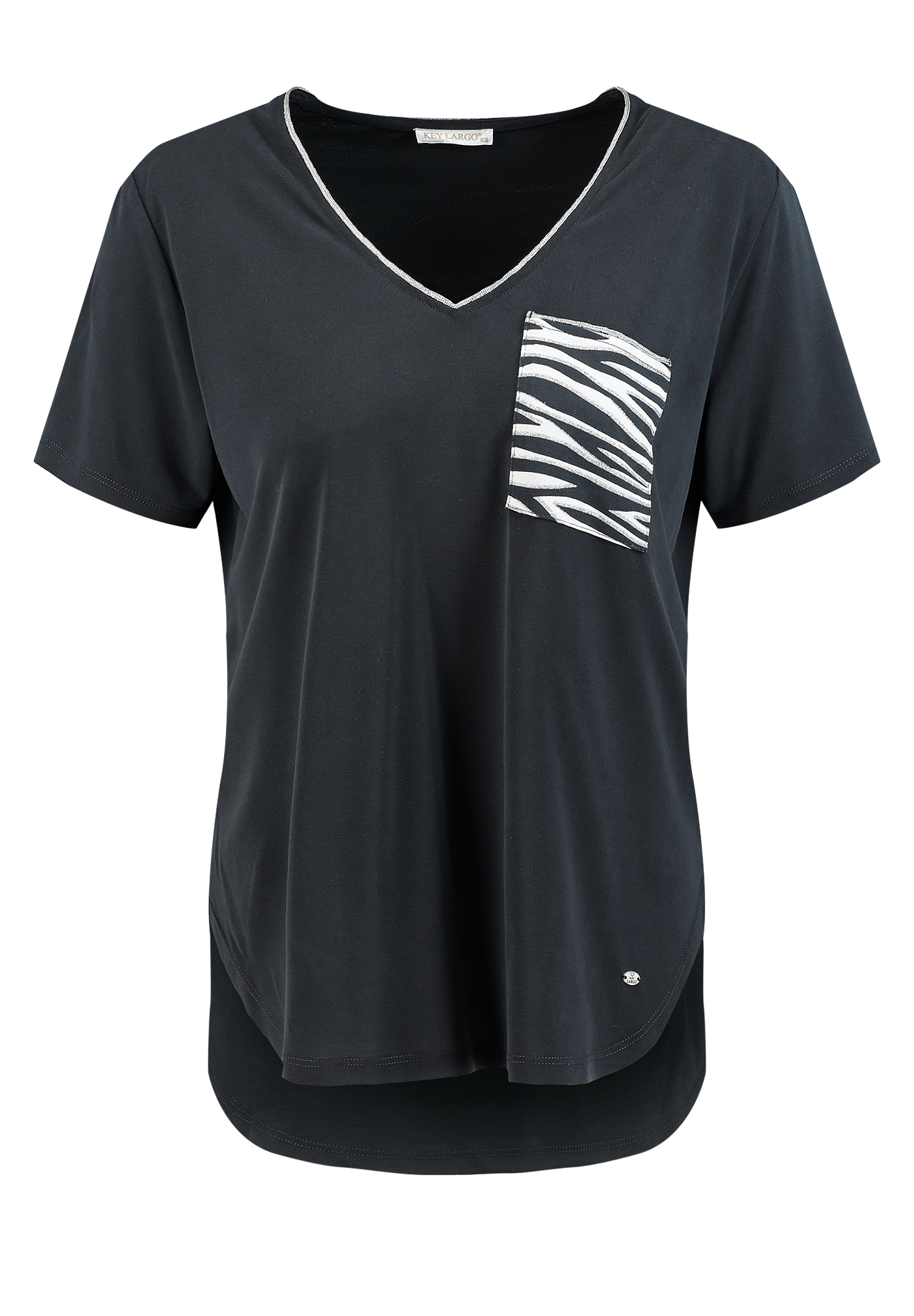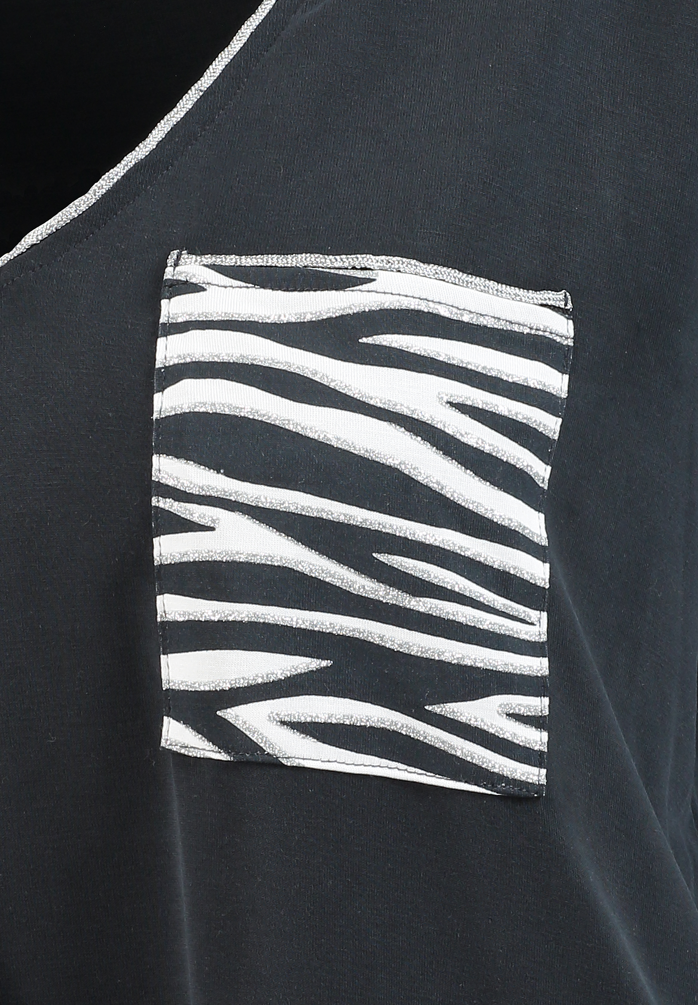 schlichte, einfarbige Shirt wird durch die aufgesetzte Brusttasche im angesagten Zebra-Print zum modischen