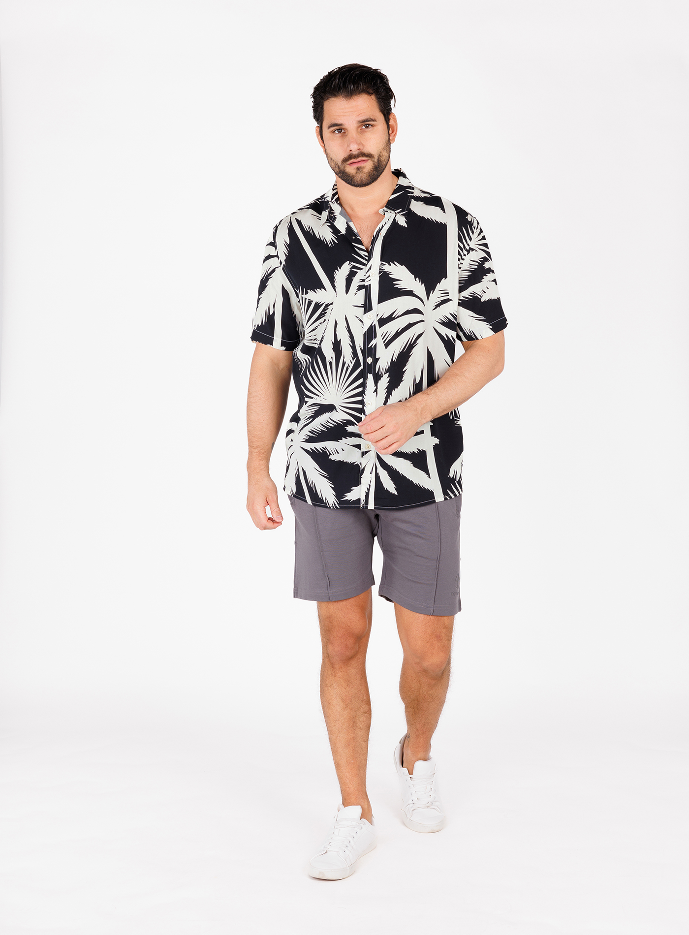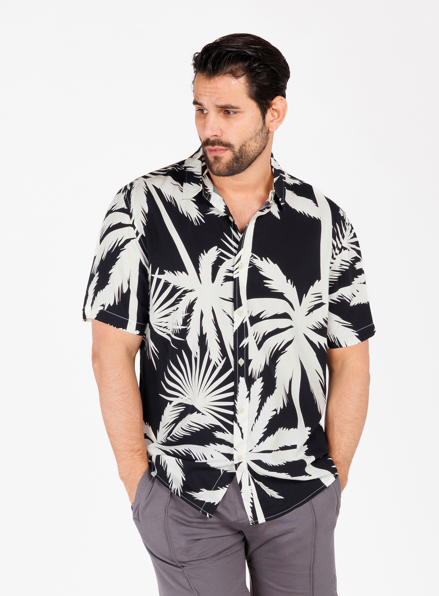 Palmen auf der Haut - damit besticht das Hemd mit seinem tollen Palmen Muster am Strand oder in der Stadt.