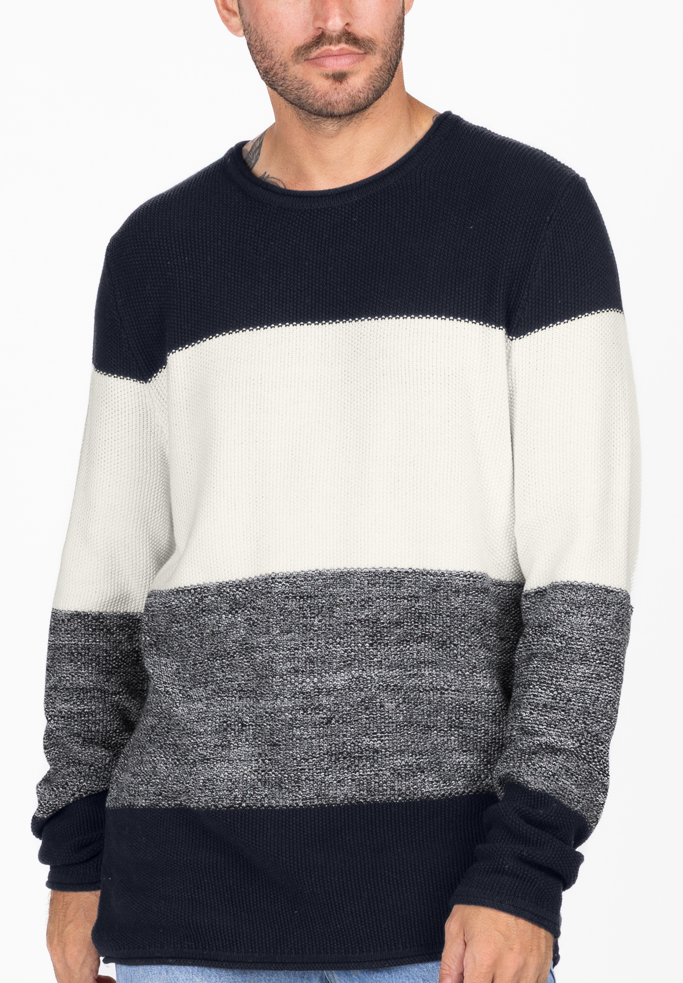 einem Must-Have für jede Jahreszeit. Dieser stylische Rundhalspullover mit Blockstreifen