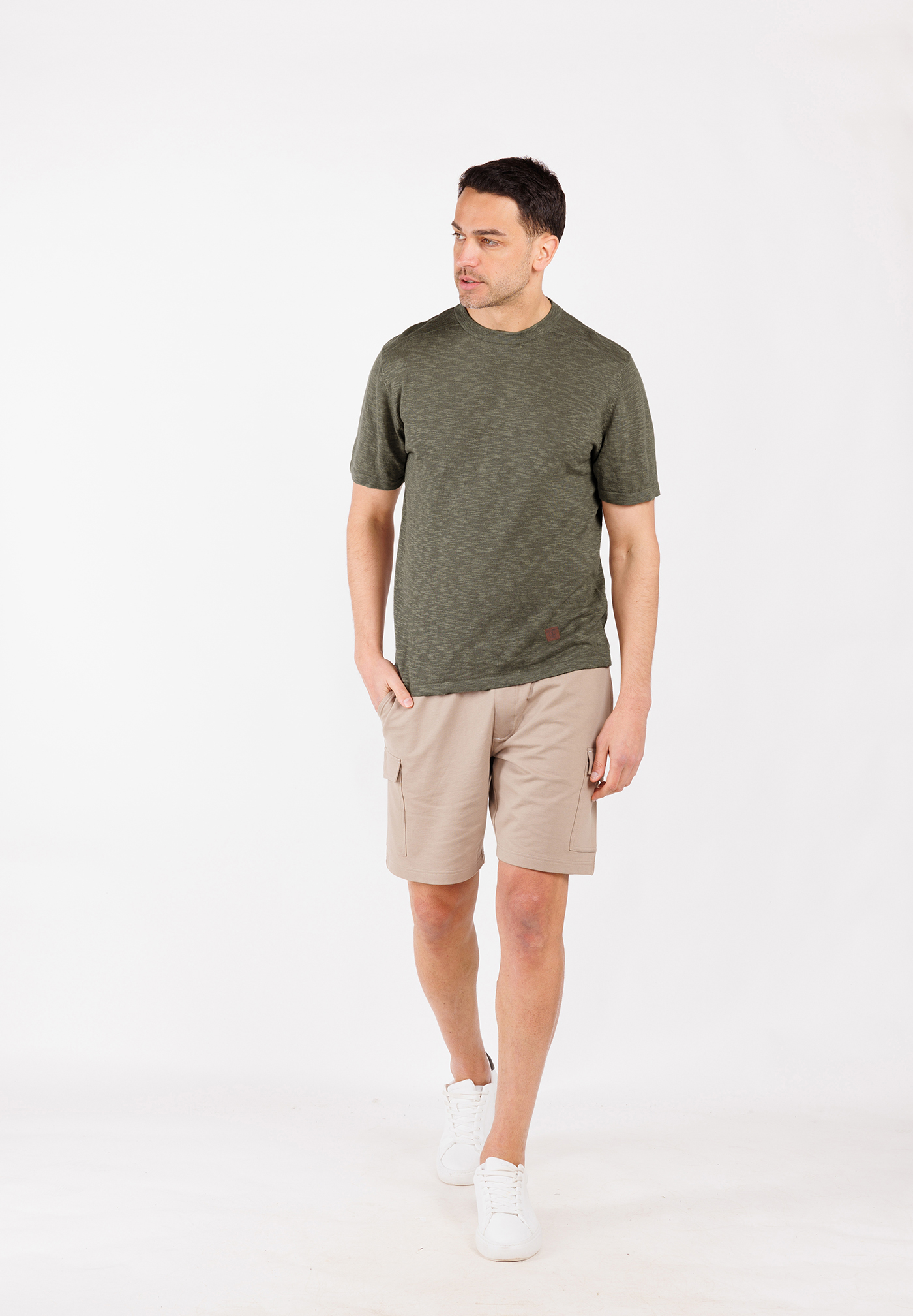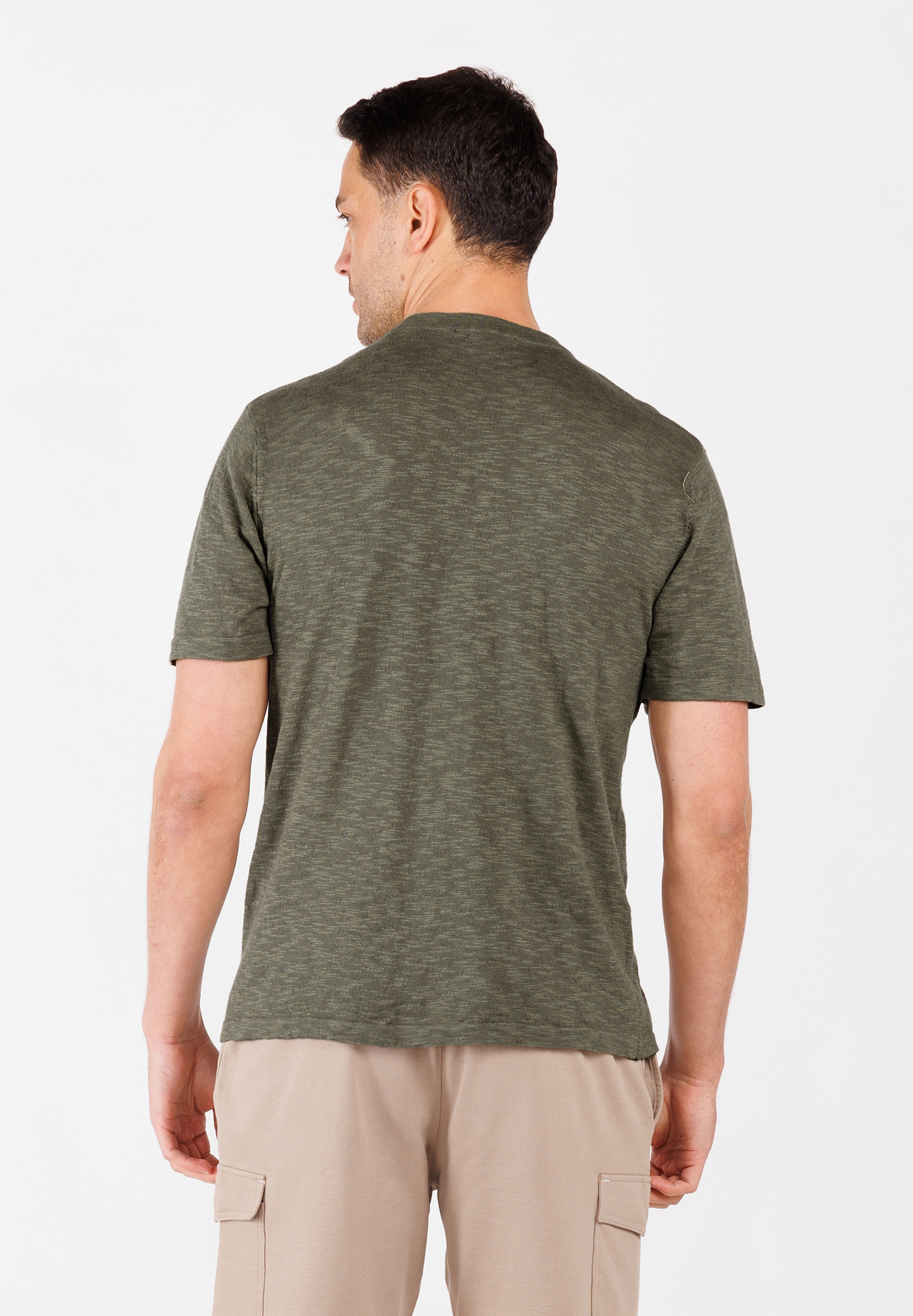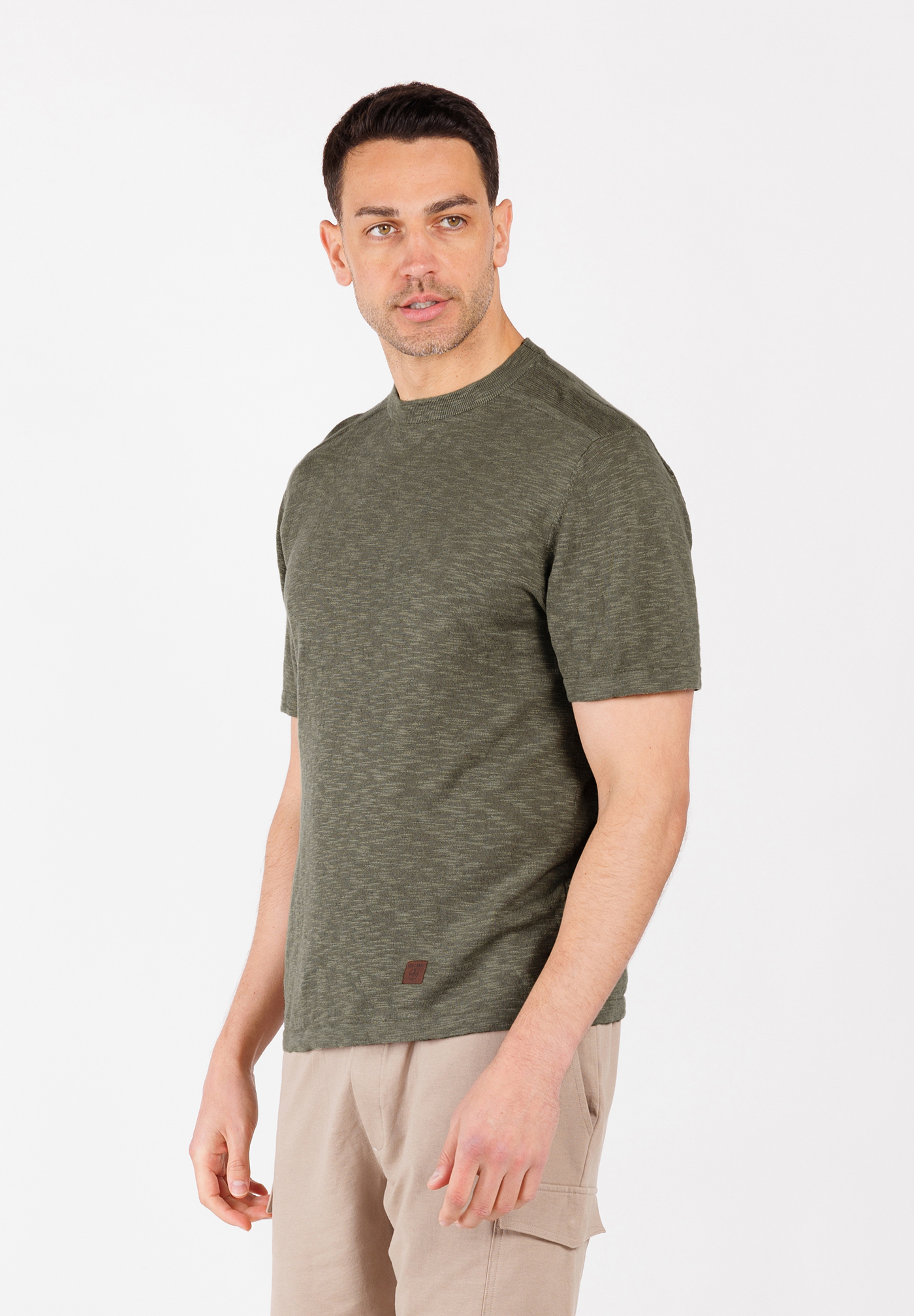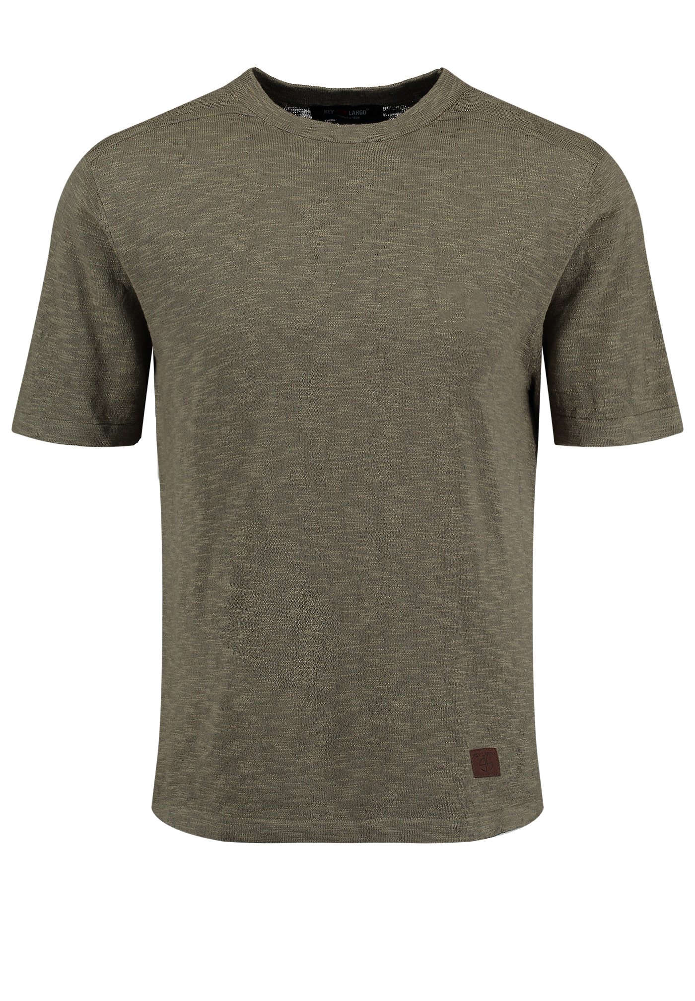 Leder-Applikation auf der Brust bietet dieses T-Shirt eine zurückhaltende, aber edle Optik.