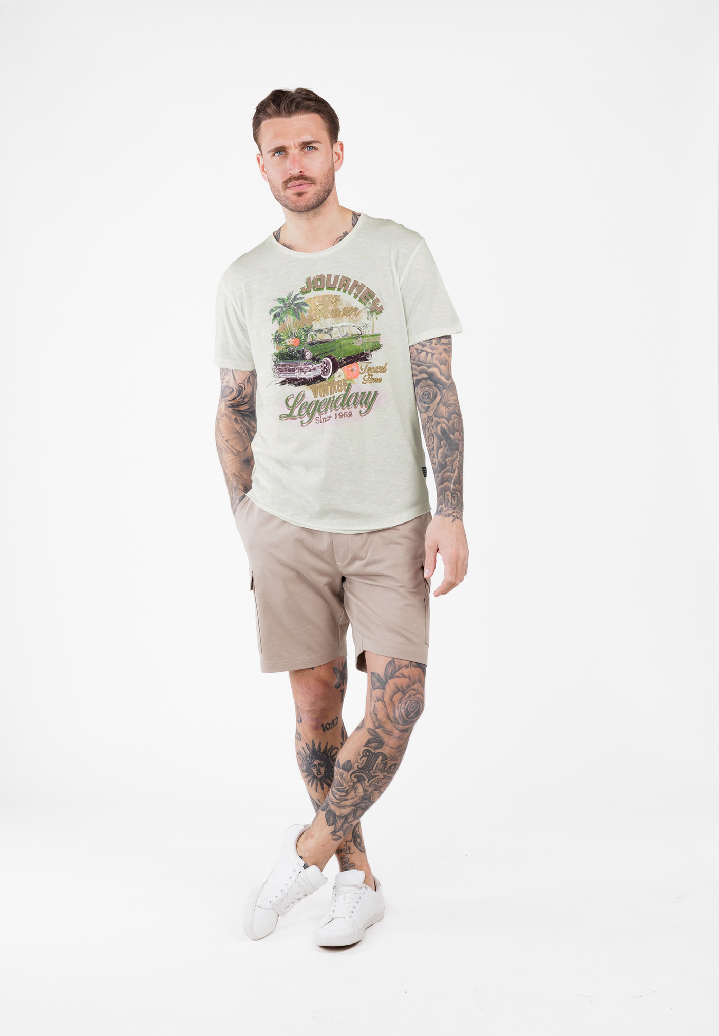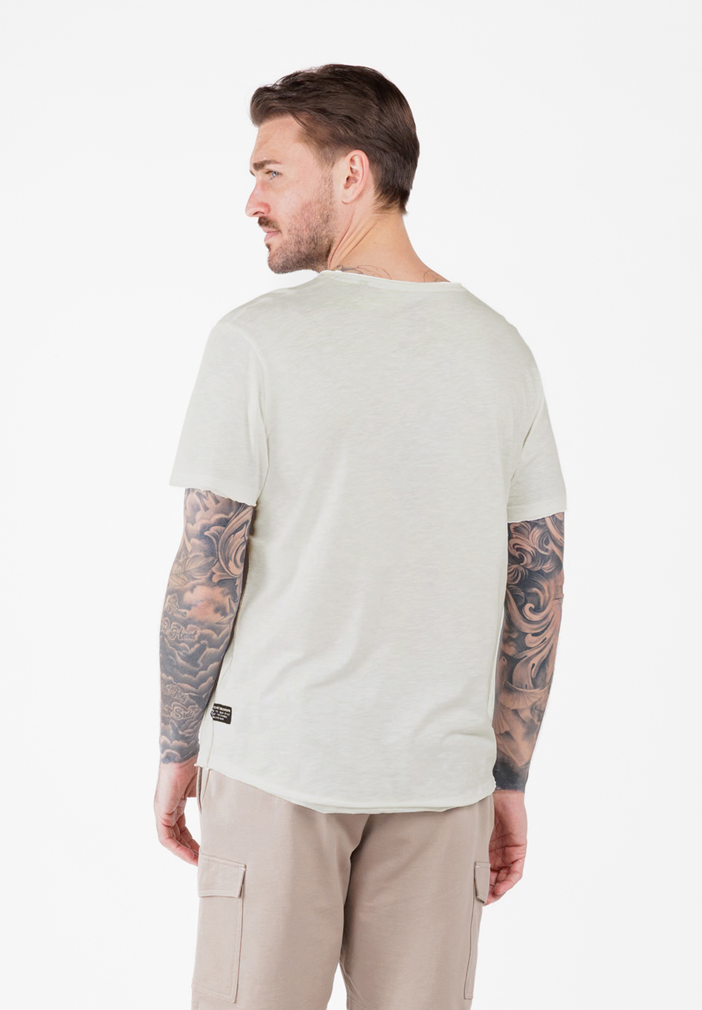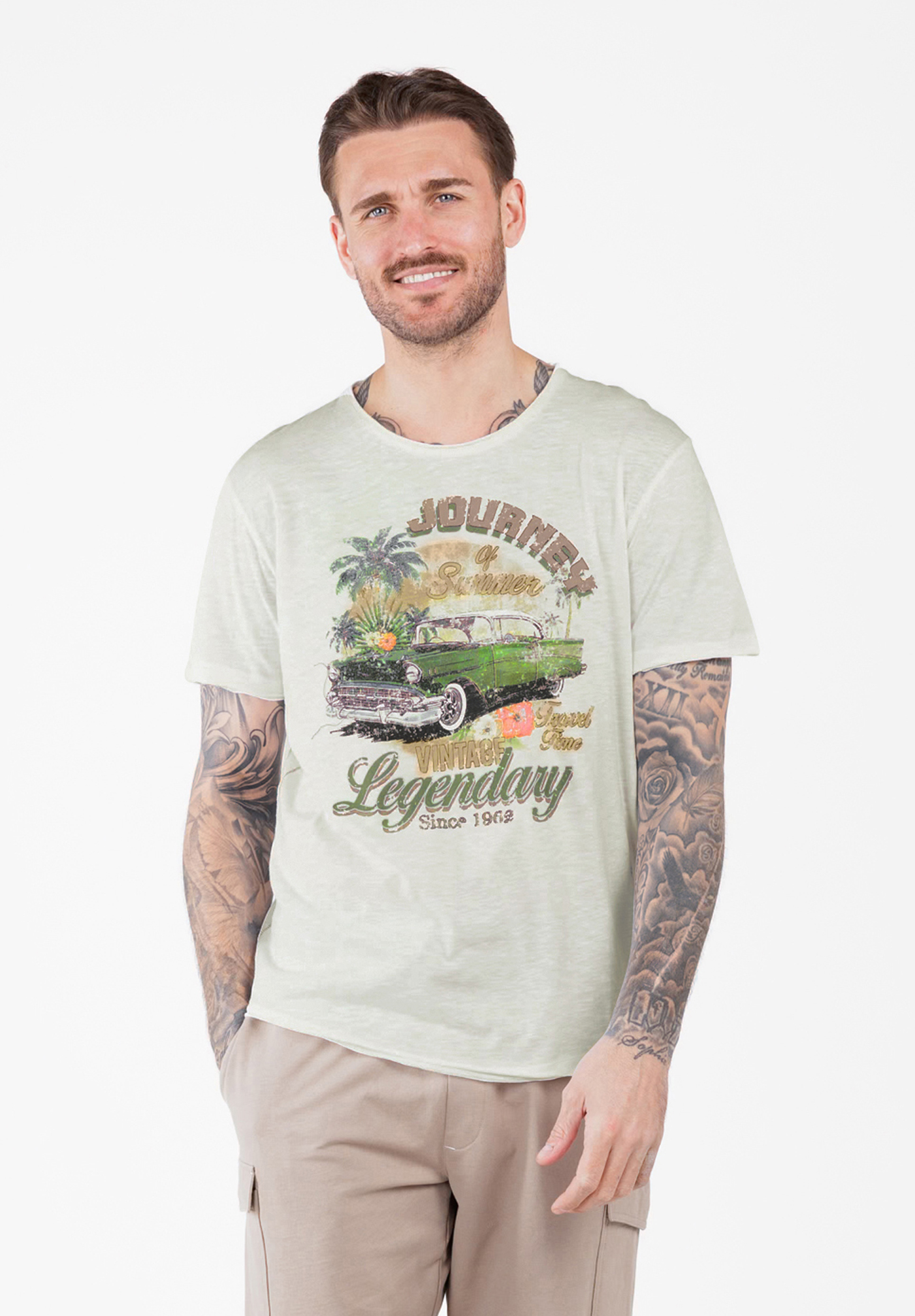 - Design: Klassisches Rundhals-T-Shirt mit ansprechenden Prints auf der Brust und Rücken, der das Design abrundet und dem Shirt eine besondere Note verleiht.