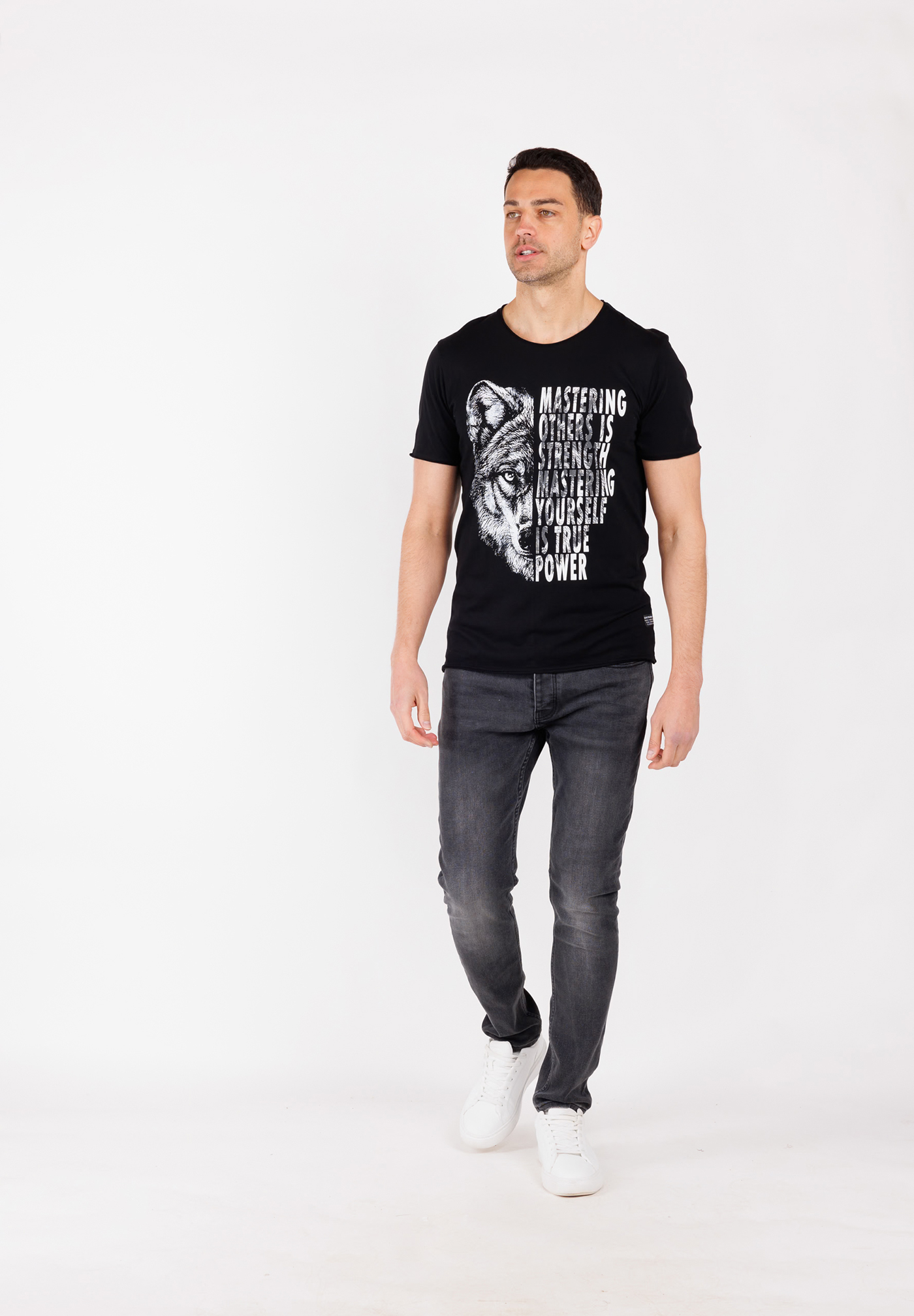 - Design: Klassisches Rundhals-T-Shirt mit ansprechenden Prints auf der Brust und Rücken, der das Design abrundet und dem Shirt eine besondere Note verleiht.