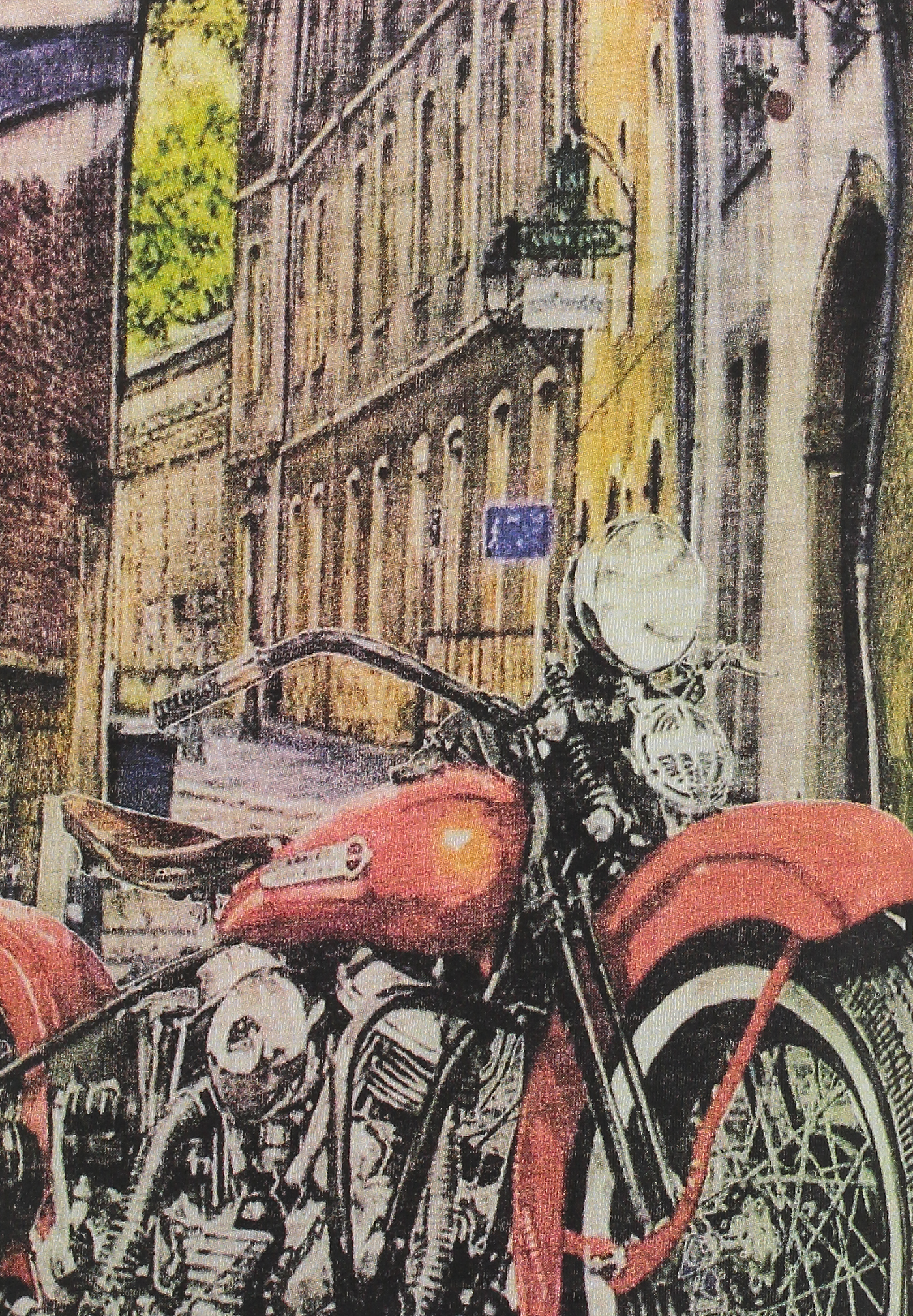 Der Frontprint ist eine ansprechende Darstellung eines Motorrads im kunstvollen Stil.