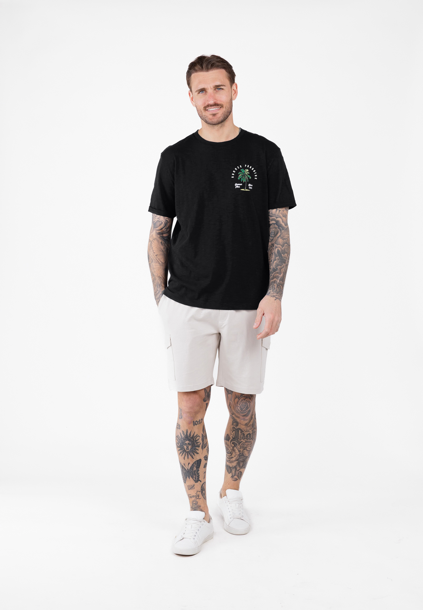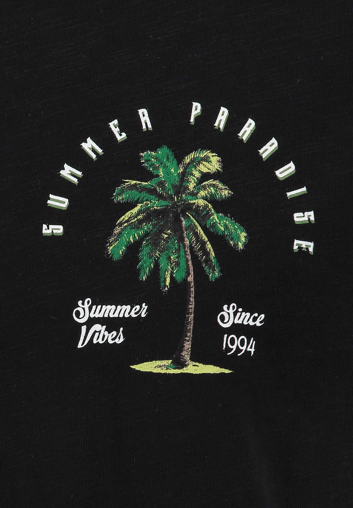 - Design: Klassisches Rundhals-T-Shirt mit ansprechenden Prints auf der Brust und Rücken, der das Design abrundet und dem Shirt eine besondere Note verleiht.