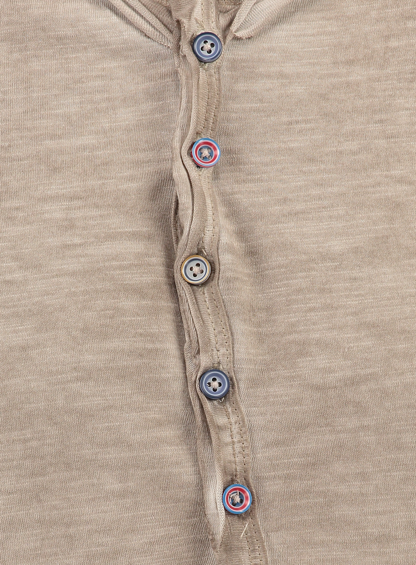 Als besonderes Highlight sind die verschieden farbigen Knöpfe ein kleiner Blickfang bei dem sonst schlichten Basic Shirt.