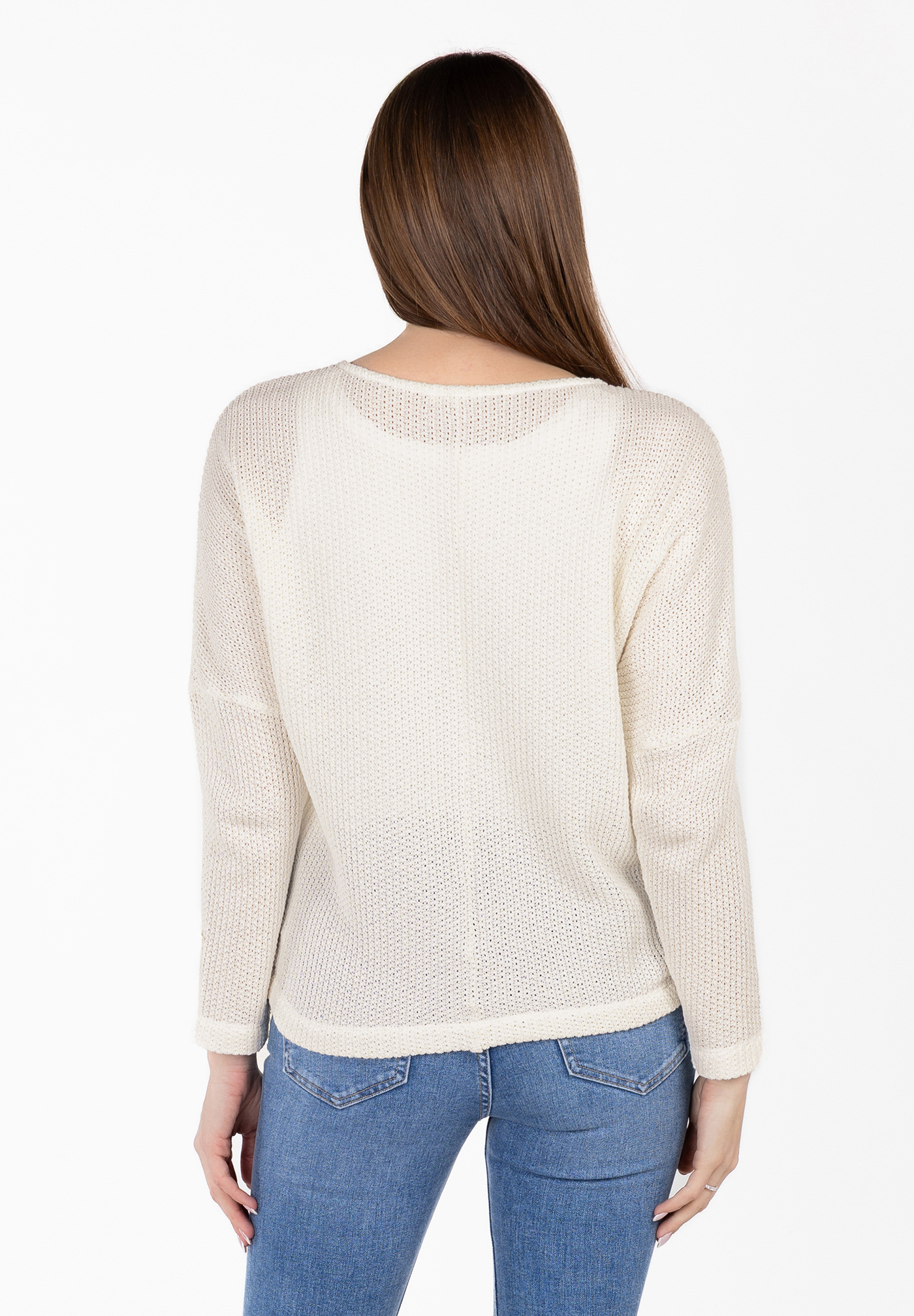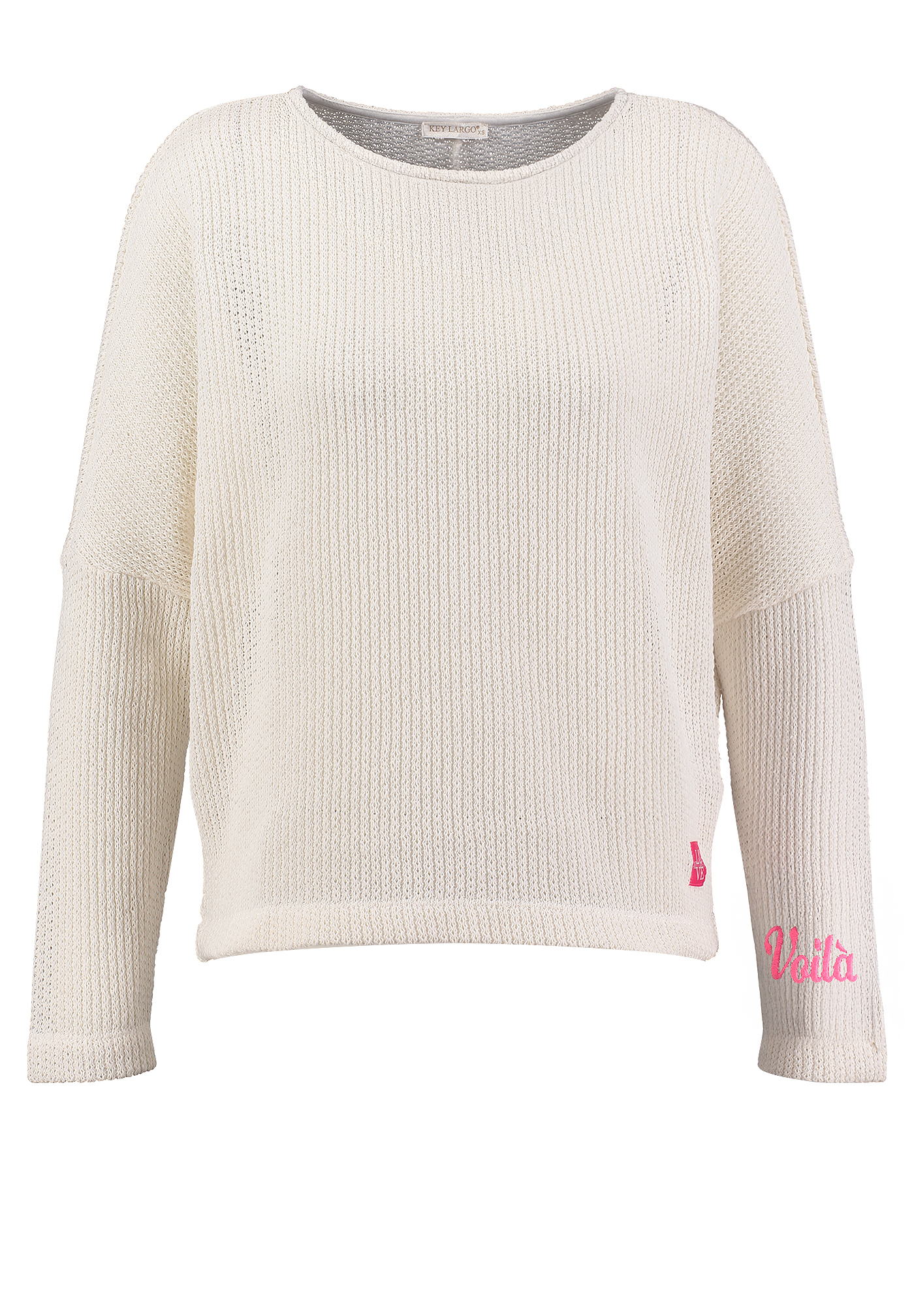 dem weichen Strickmaterial jeden Alltagslook mühelos aufwertet. Die hellen Farben wie offwhite und light blue verleihen