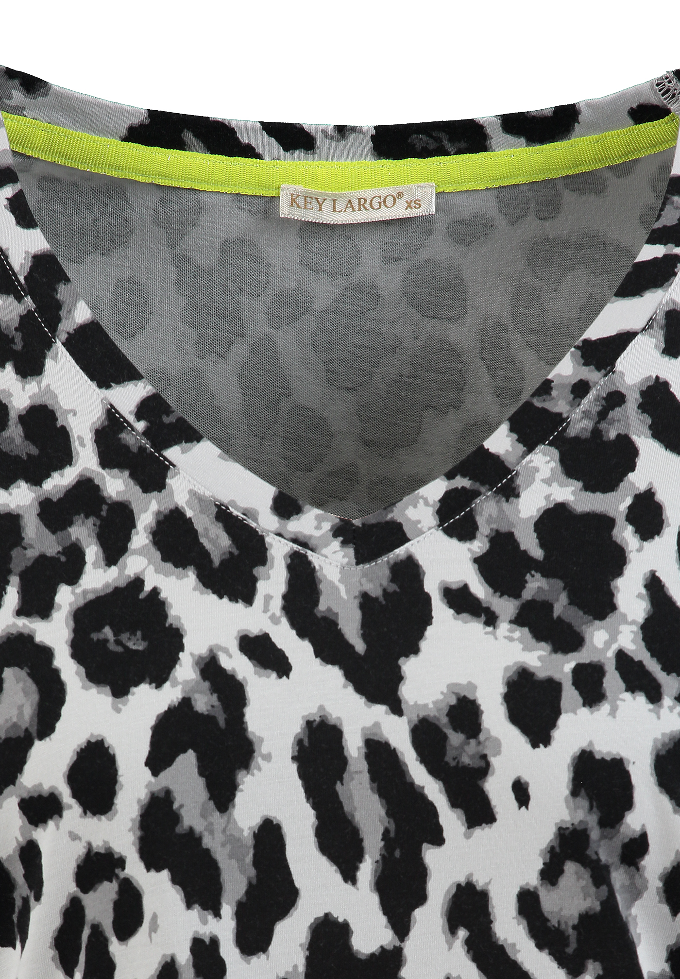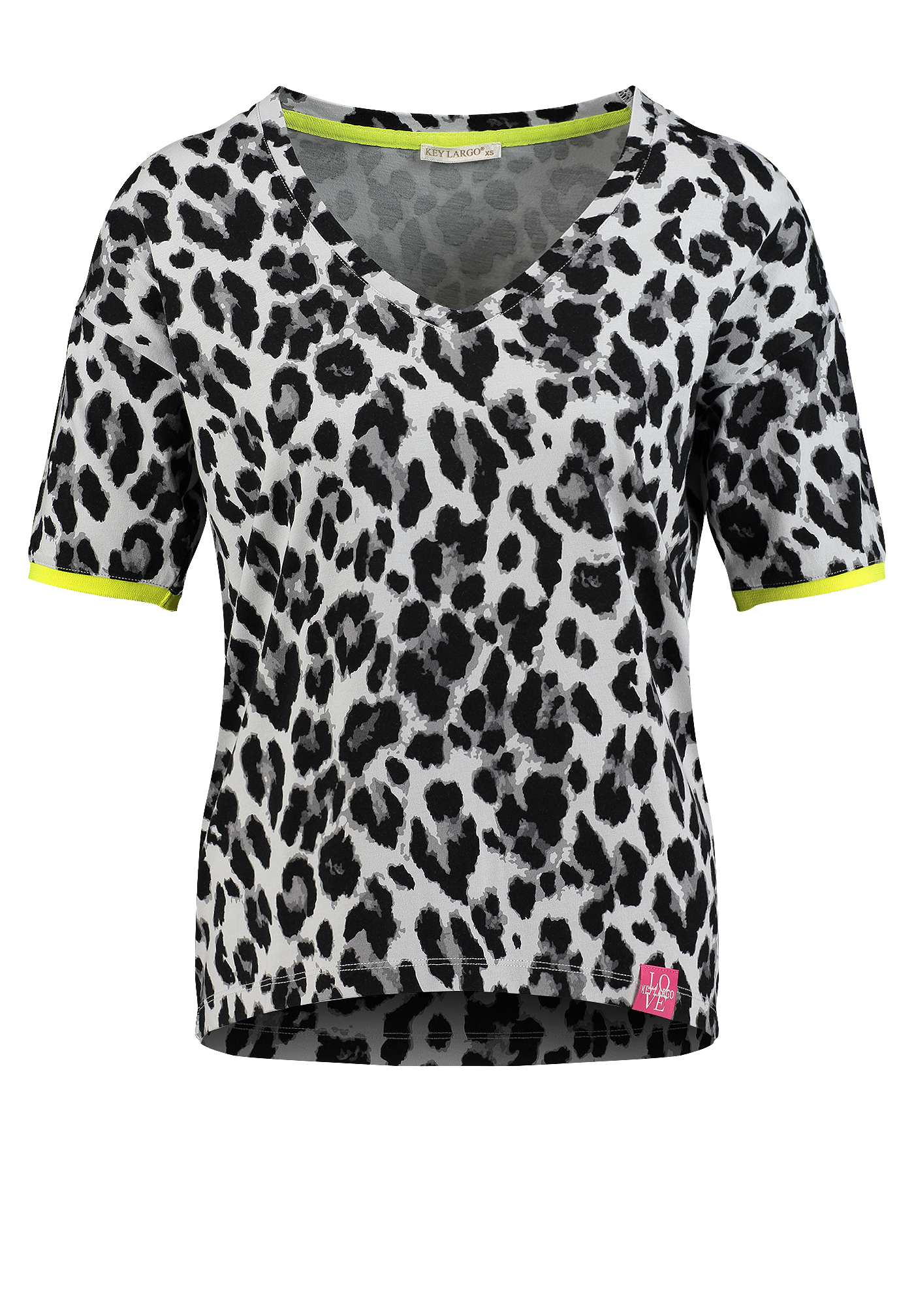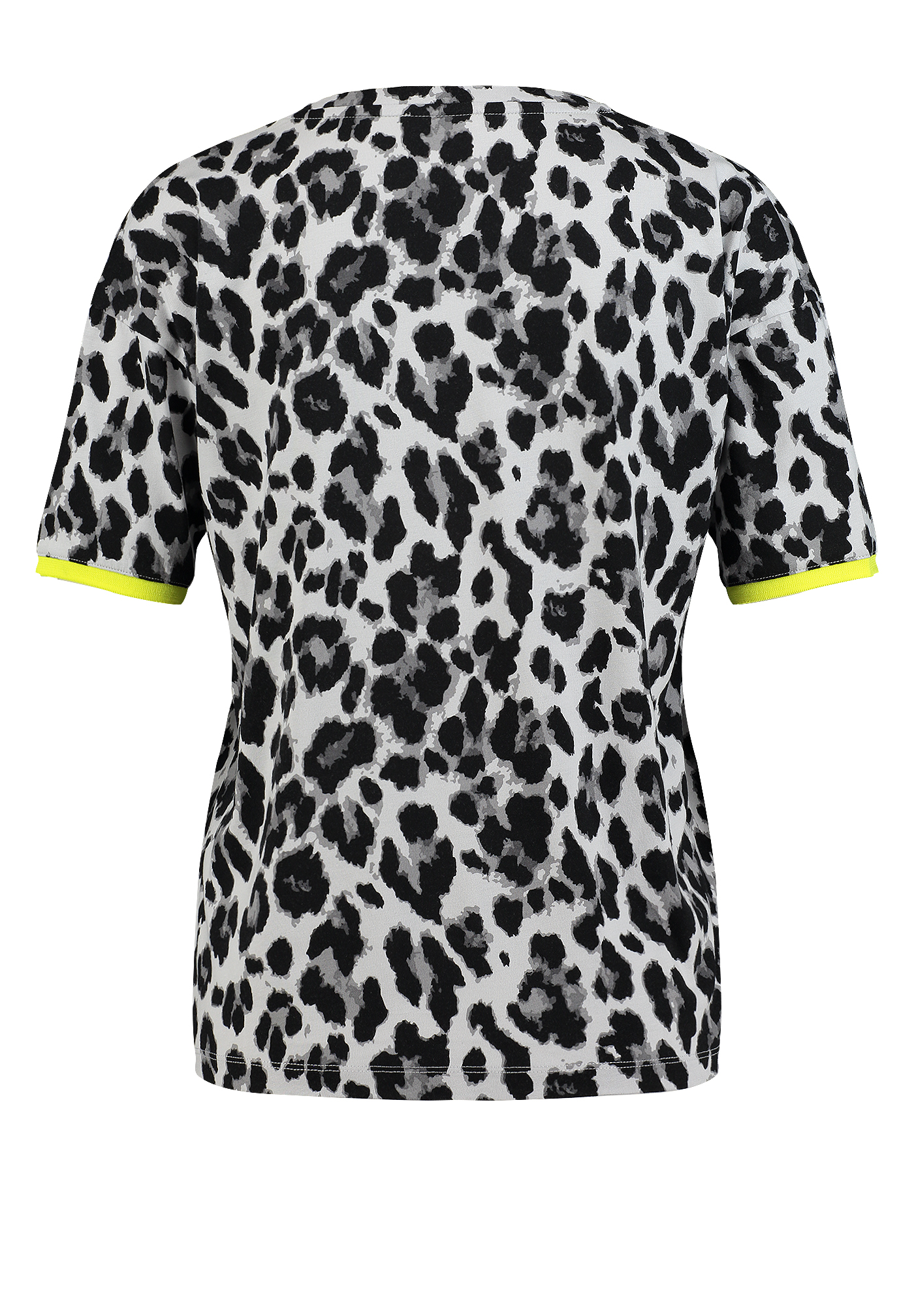 Das klassische Animal-Muster verleiht dem Shirt eine selbstbewusste Note, während kontrastfarbene Abschlüsse