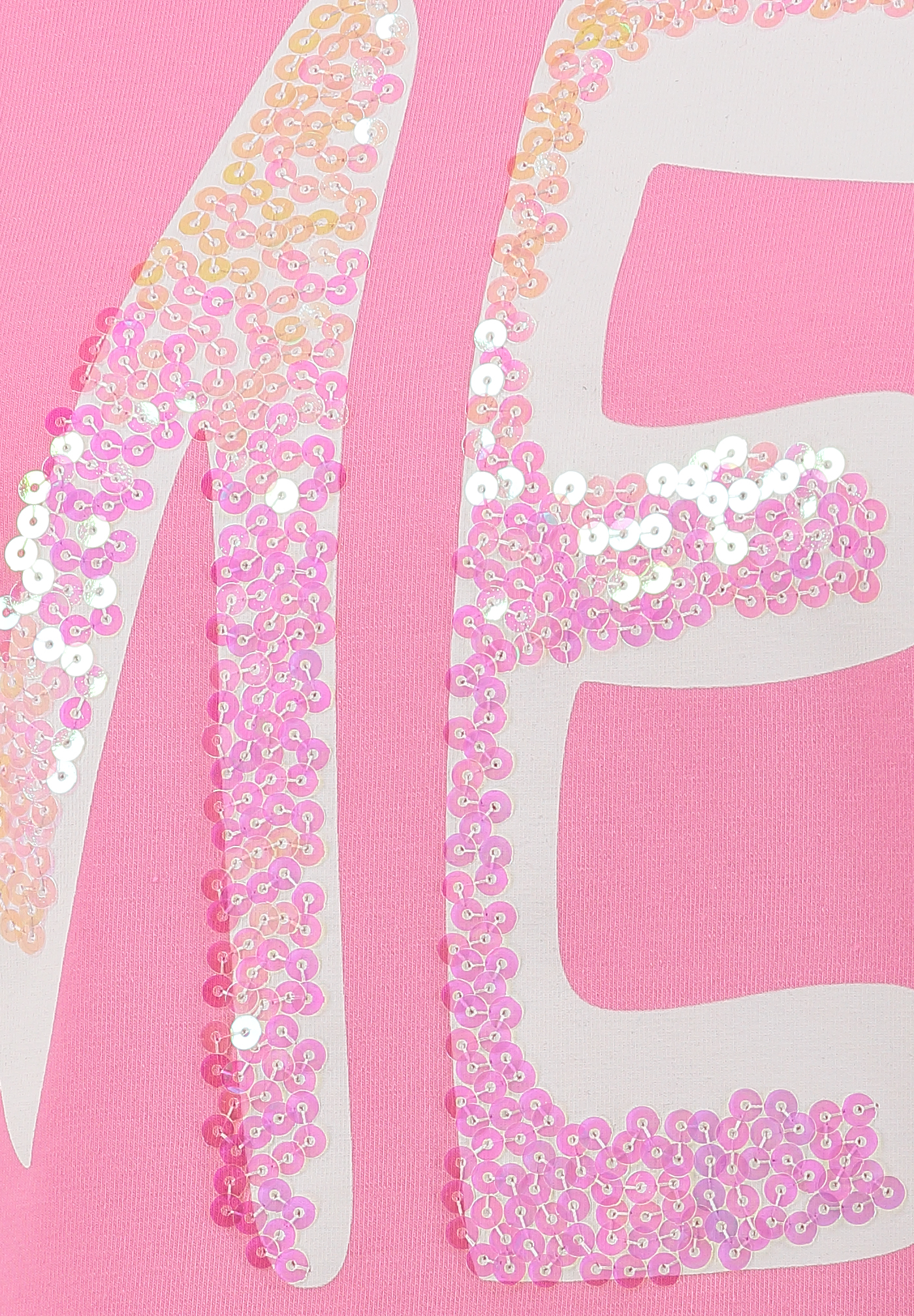 Statement-Print auf der Vorderseite wird durch funkelnde Pailletten-Details ergänzt und sorgt für einen