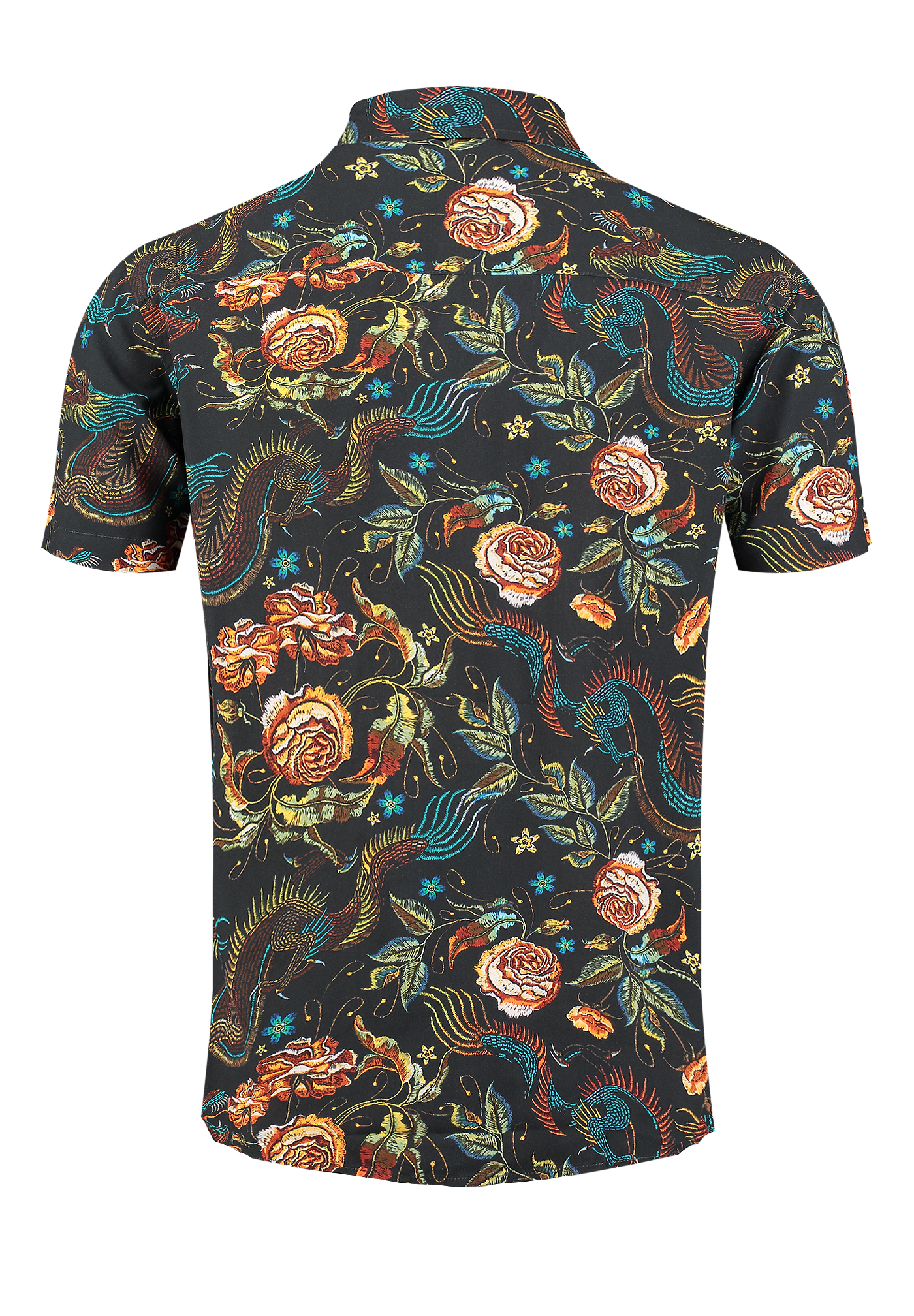 - Asiatisch inspirierter Allover-Print: Mit Drachen, floralen Details und kunstvollen Ornamenten.