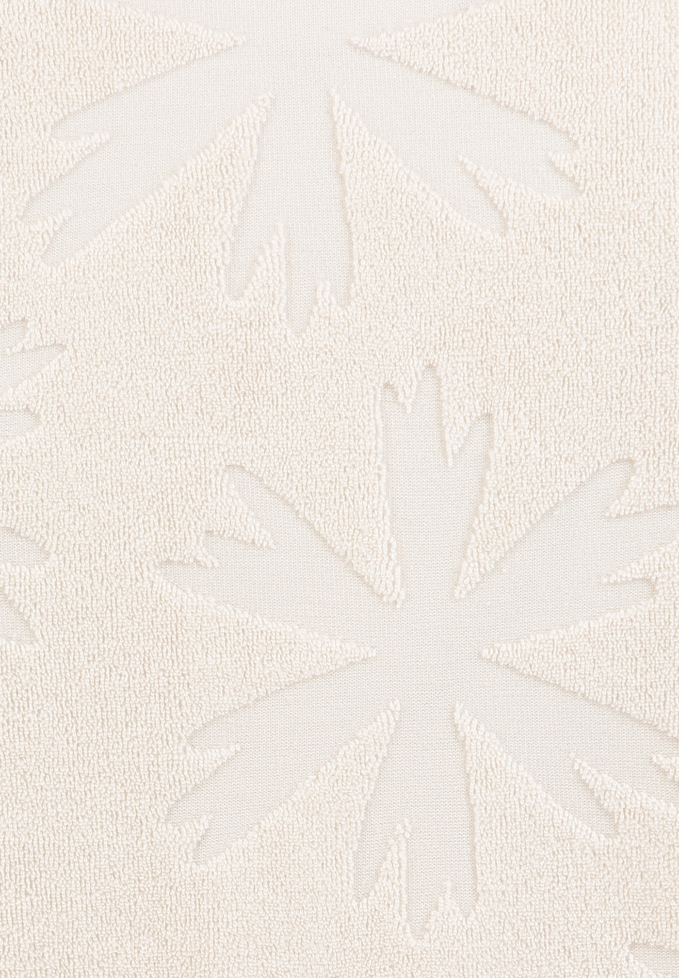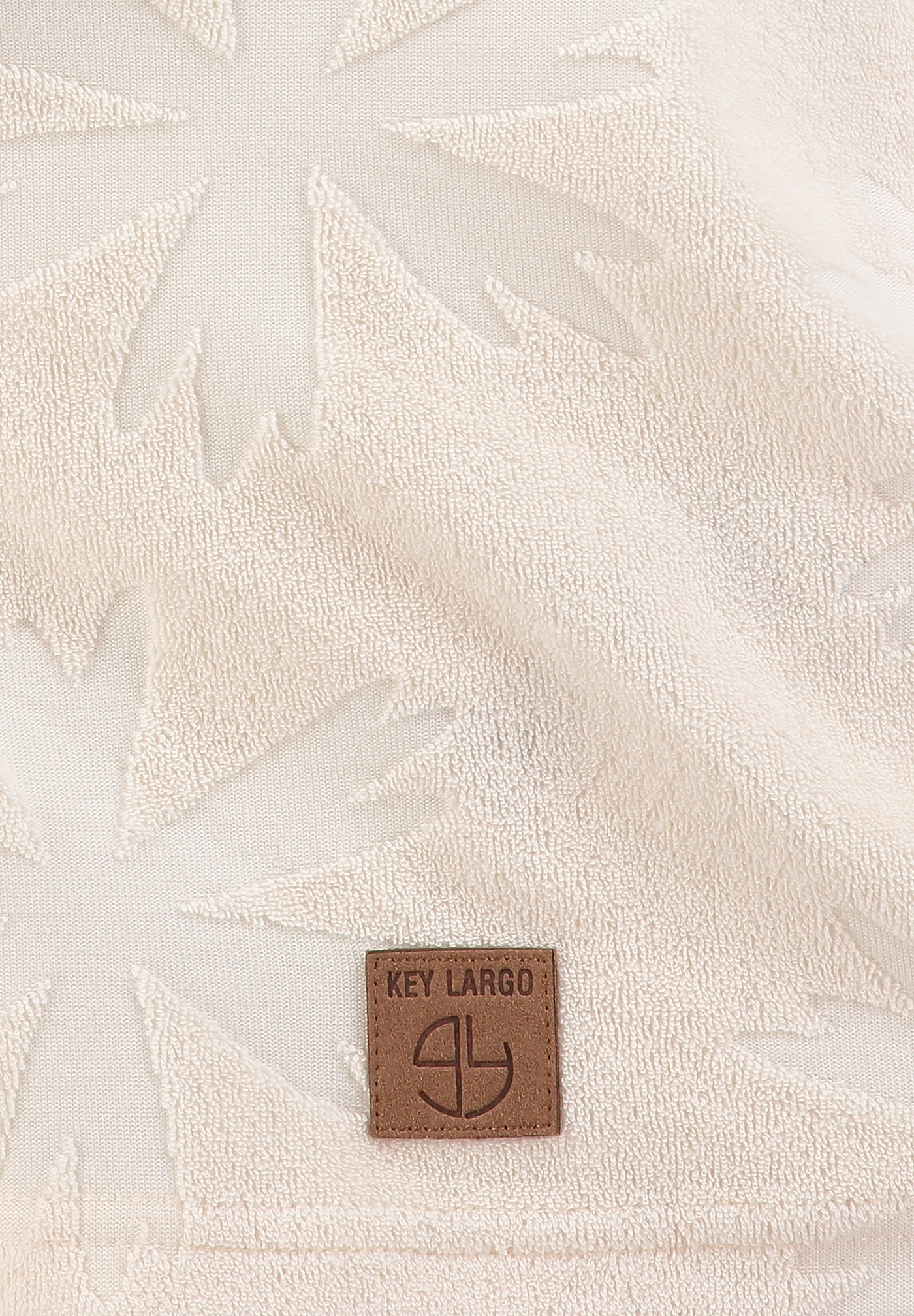 Das eingewebte Muster verleiht dem Look subtile Struktur, während das Frottee-Material für einen soften, trendigen Beach-Resort-Vibe sorgt.