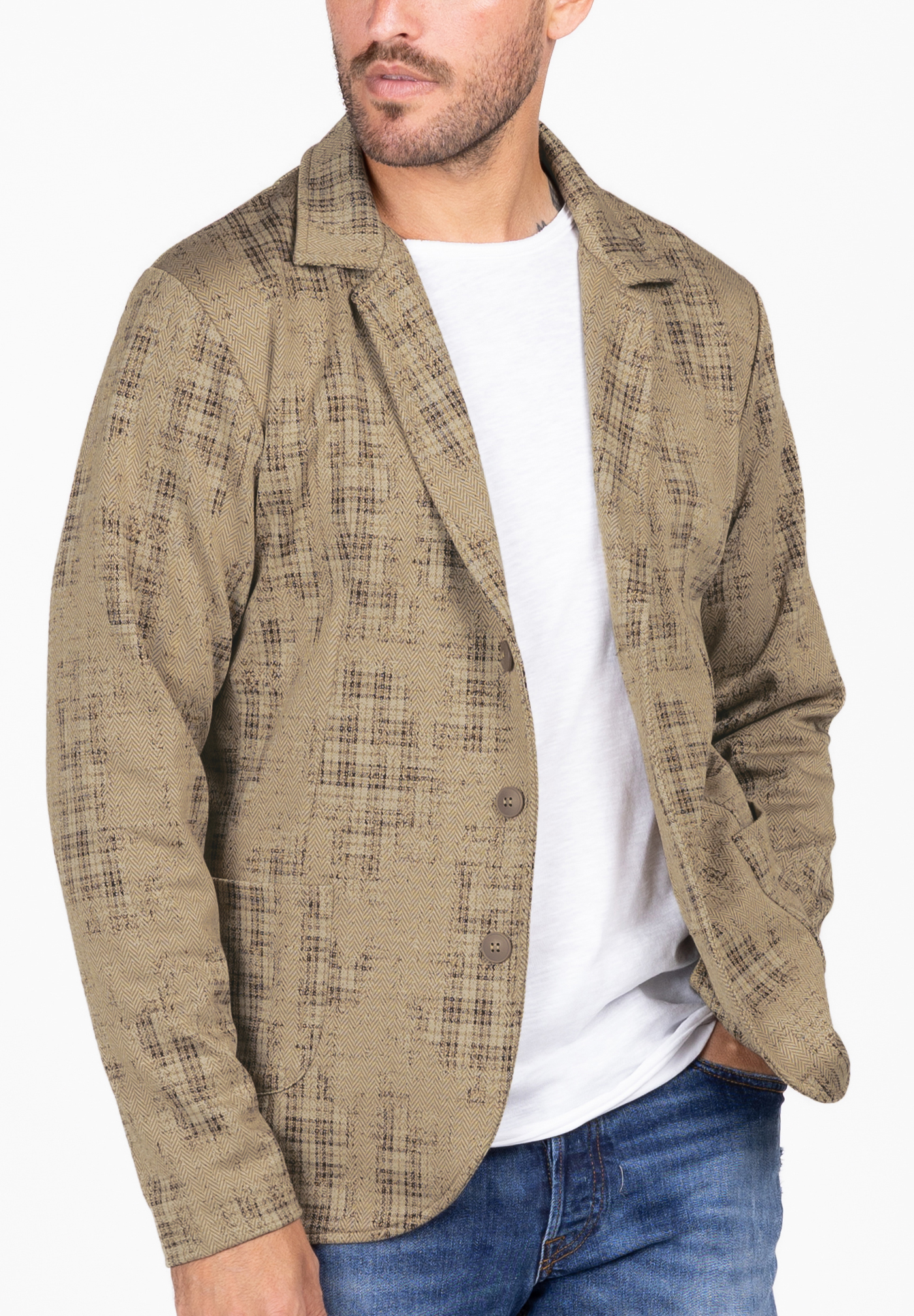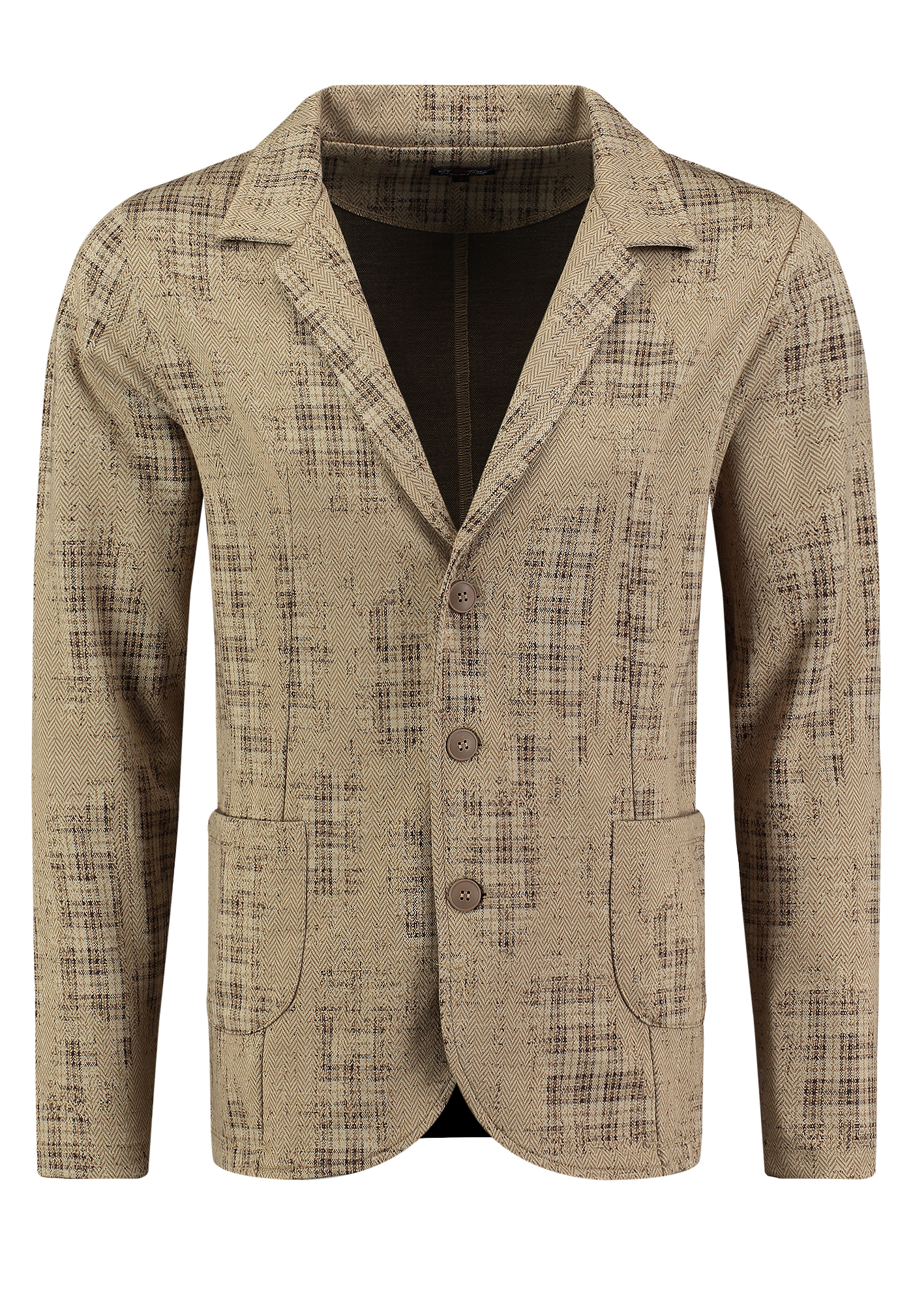 Mit seinem besonderen Muster in Braun-Beige ist das Jackett ein echter Hingucker, der sich sowohl im Büro