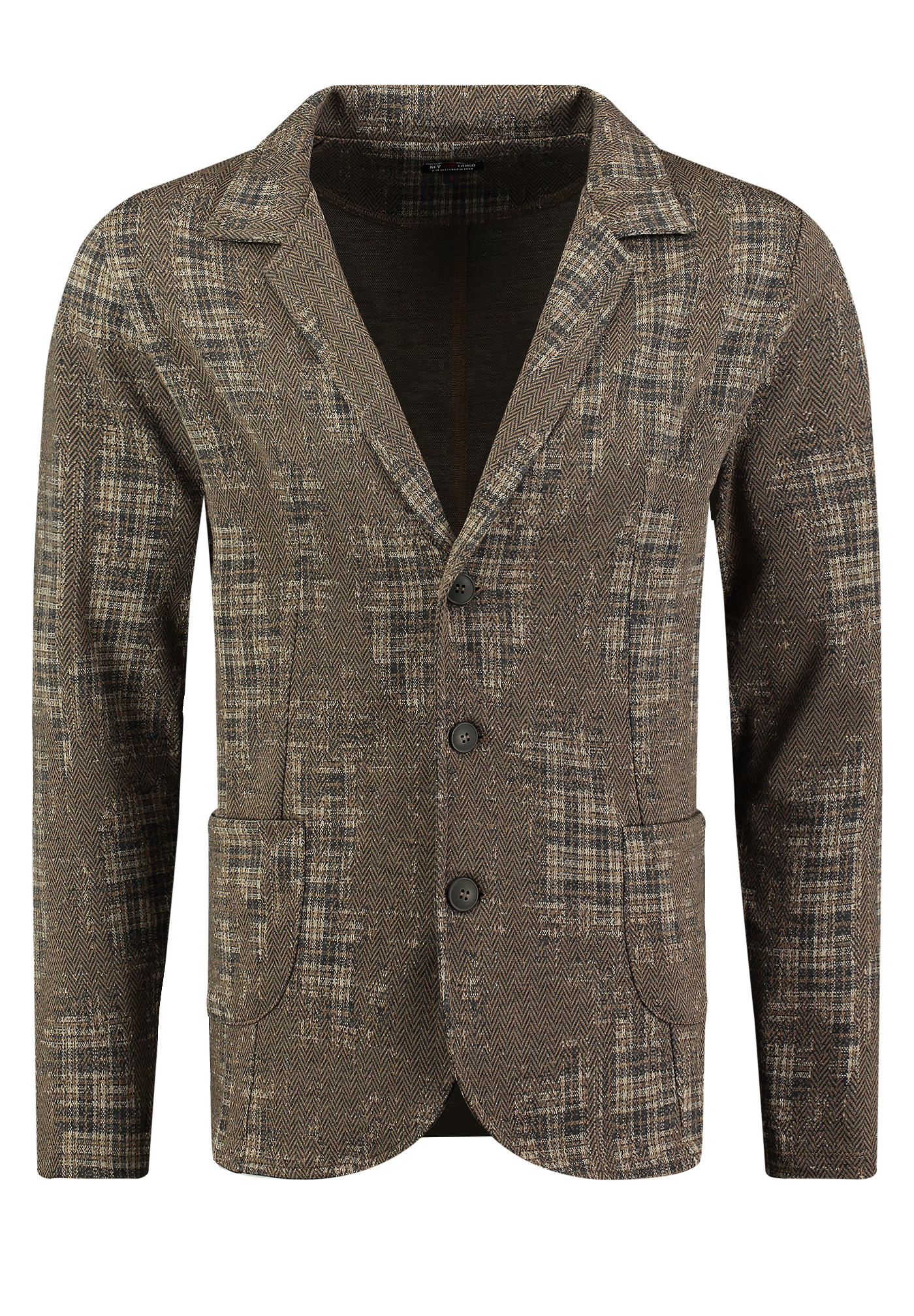 Mit seinem besonderen Muster in Braun-Beige ist das Jackett ein echter Hingucker, der sich sowohl im Büro