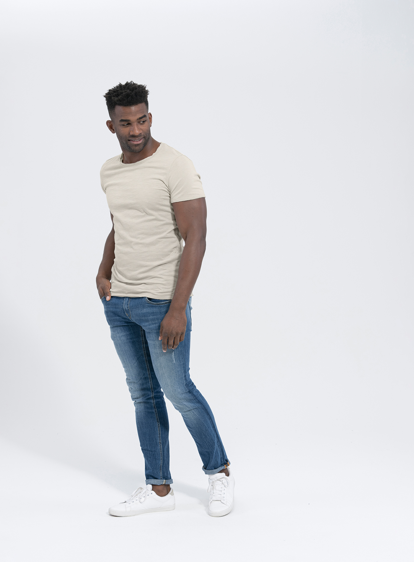 Besonders im Mittelpunkt stehen dabei die offenen Kanten, die das Basic Shirt zu etwas ganz besonderem machen.