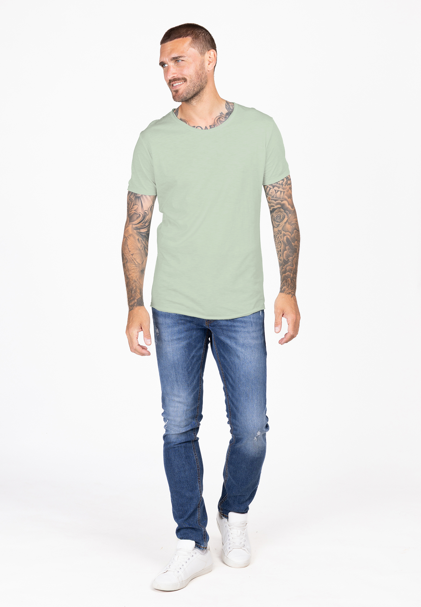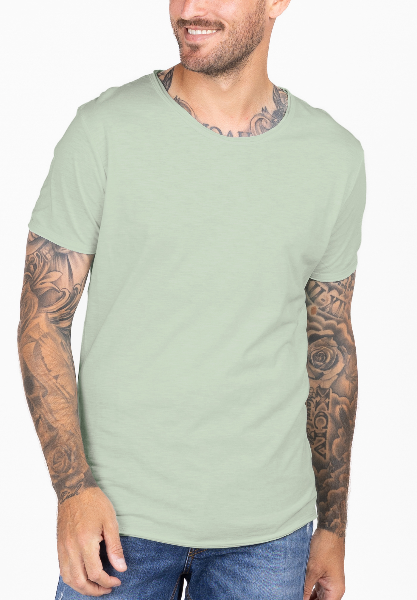 Besonders im Mittelpunkt stehen dabei die offenen Kanten, die das Basic Shirt zu etwas ganz besonderem machen.