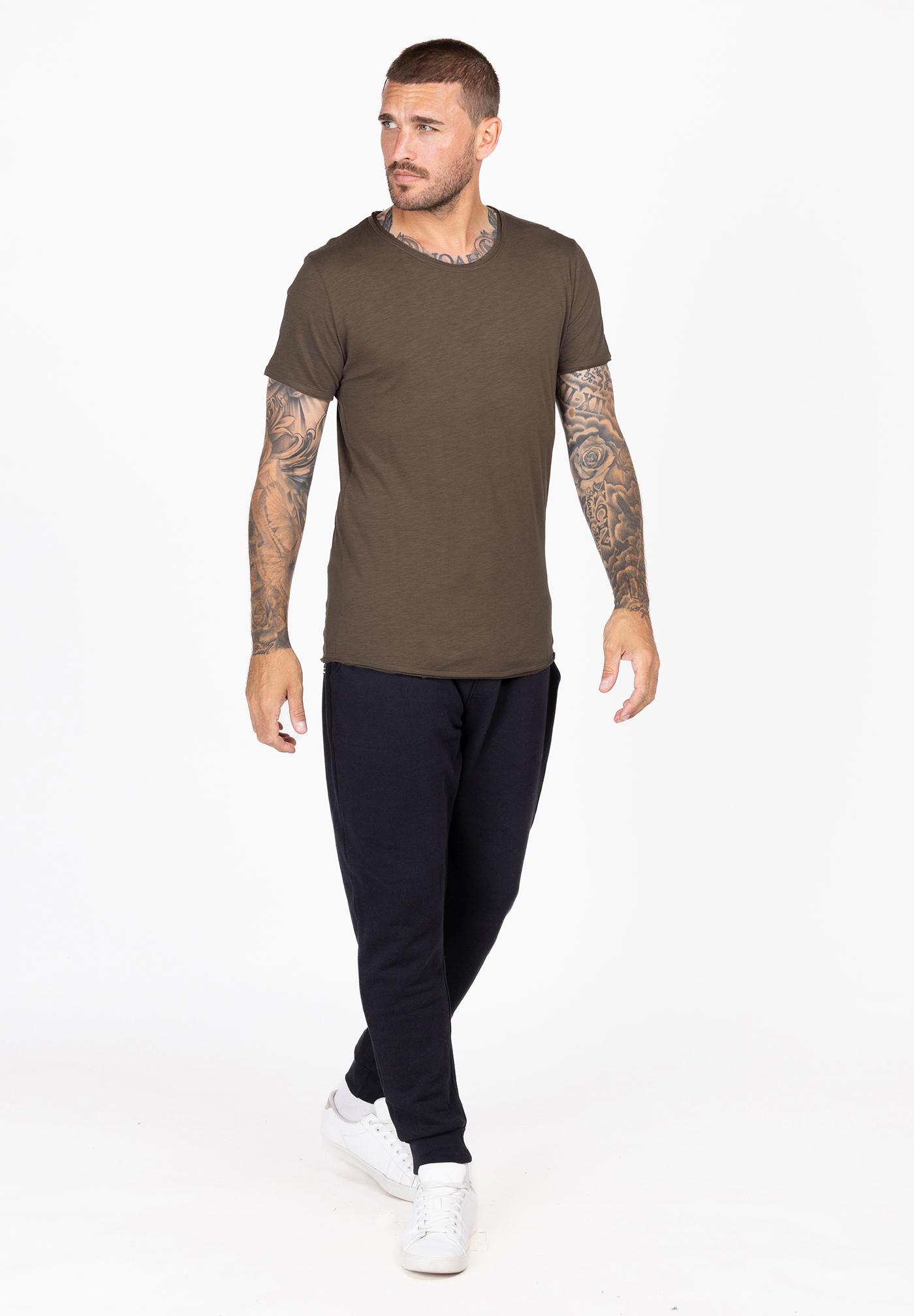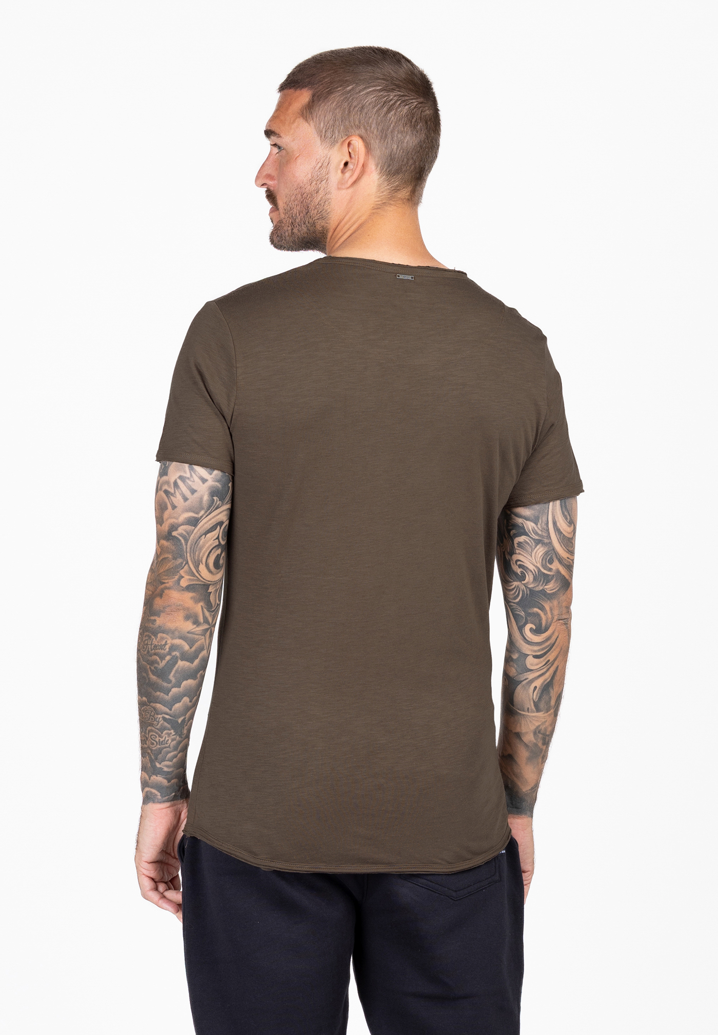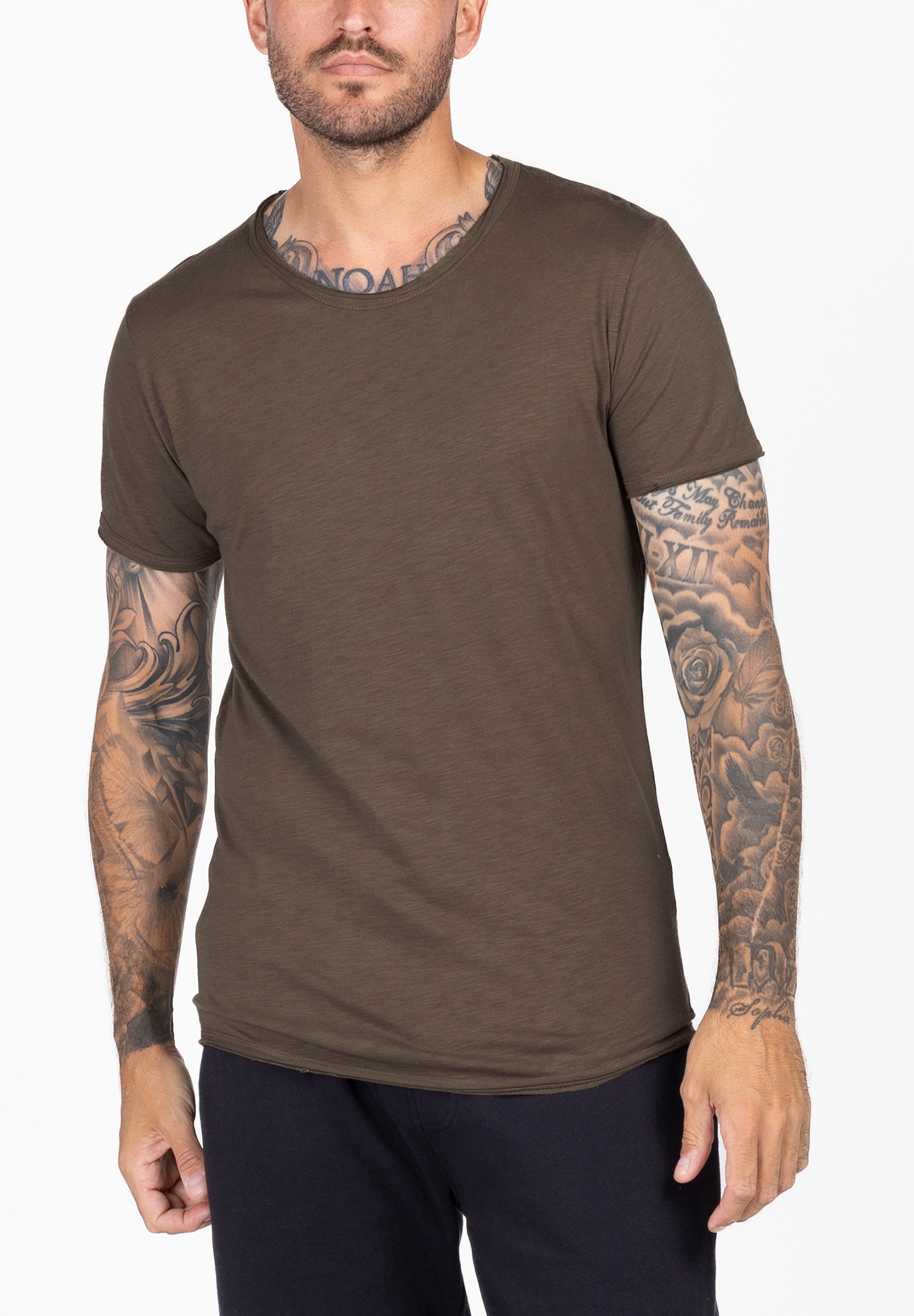 Besonders im Mittelpunkt stehen dabei die offenen Kanten, die das Basic Shirt zu etwas ganz besonderem machen.