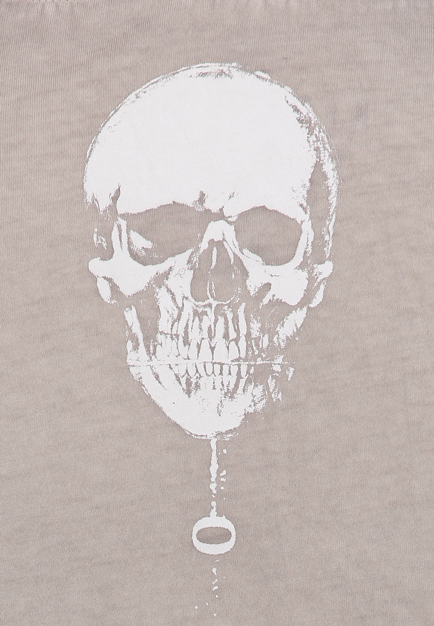 Der zusätzliche Rückenprint mit vertikalem Totenkopf-Detail verleiht dem Shirt einen individuellen und rebellischen Charakter.
