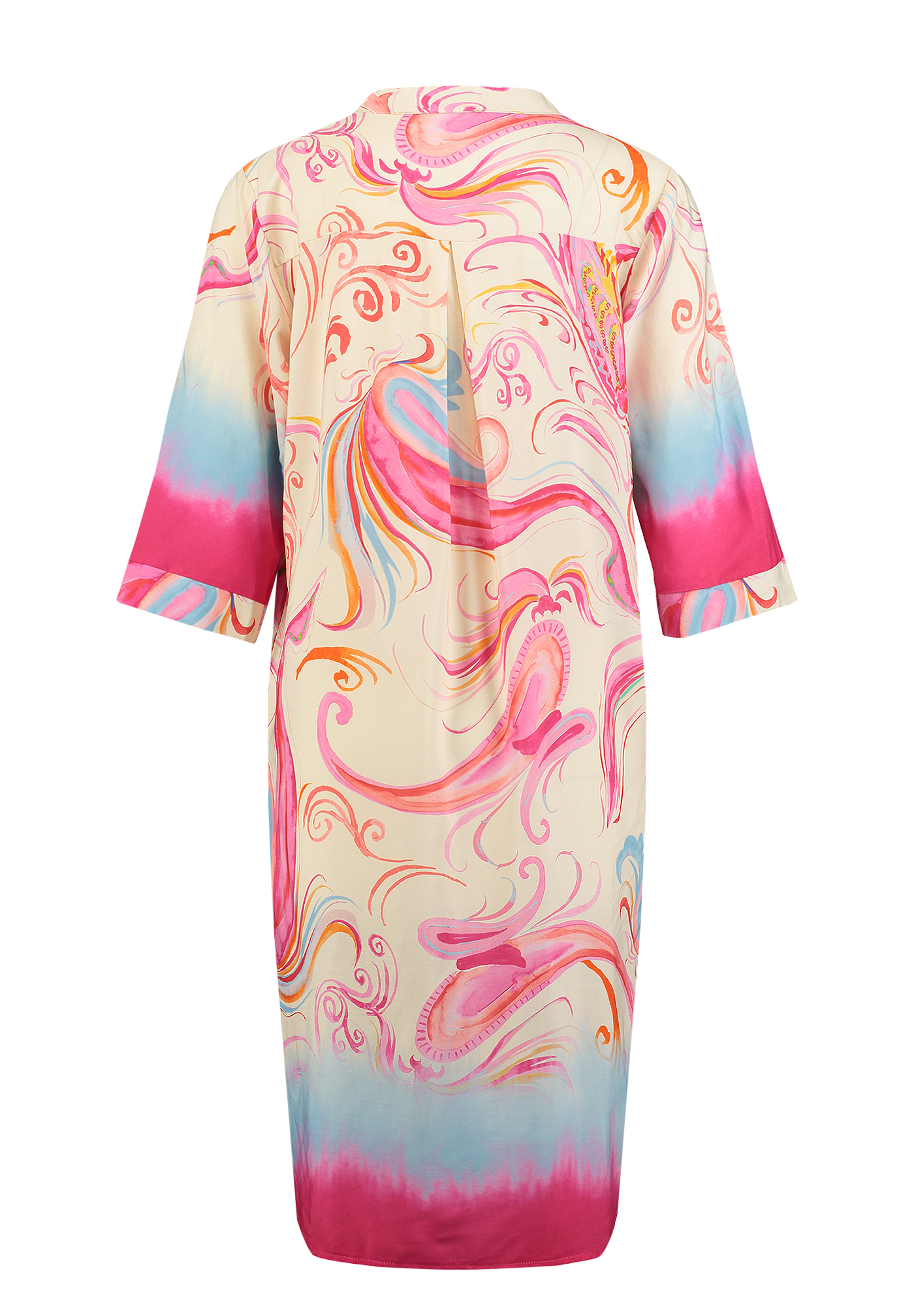Der fließende Stoff und die entspannte Silhouette sorgen für hohen Tragekomfort, während der kunstvolle Print mit lebendigen