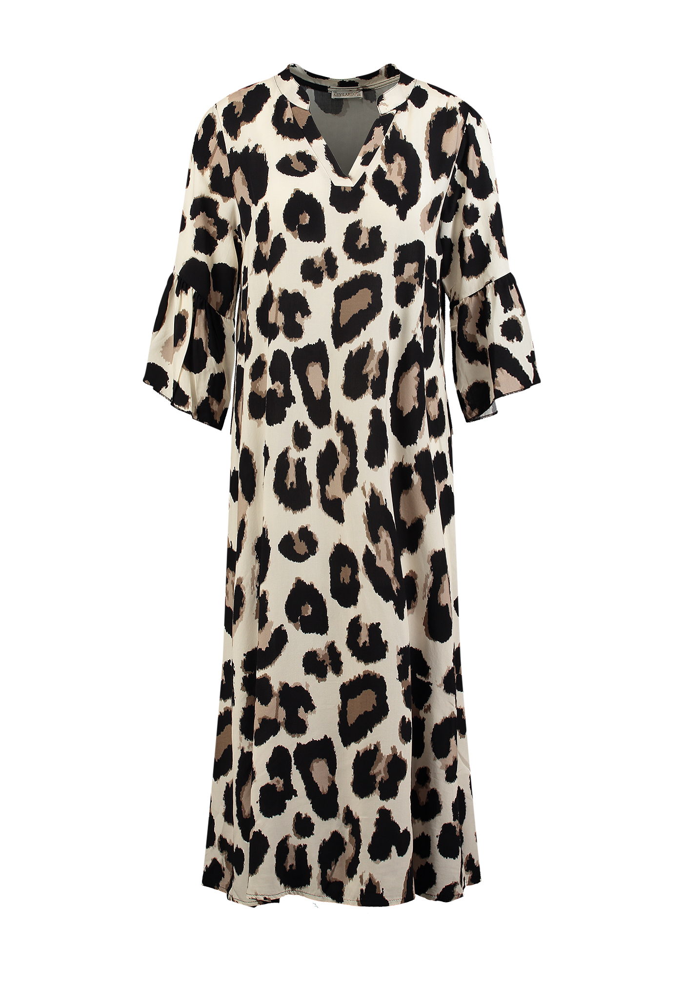 Der moderne Leo-Print in harmonischen Naturtönen verleiht dem Design eine stilvolle, gleichzeitig lässige Ausstrahlung.