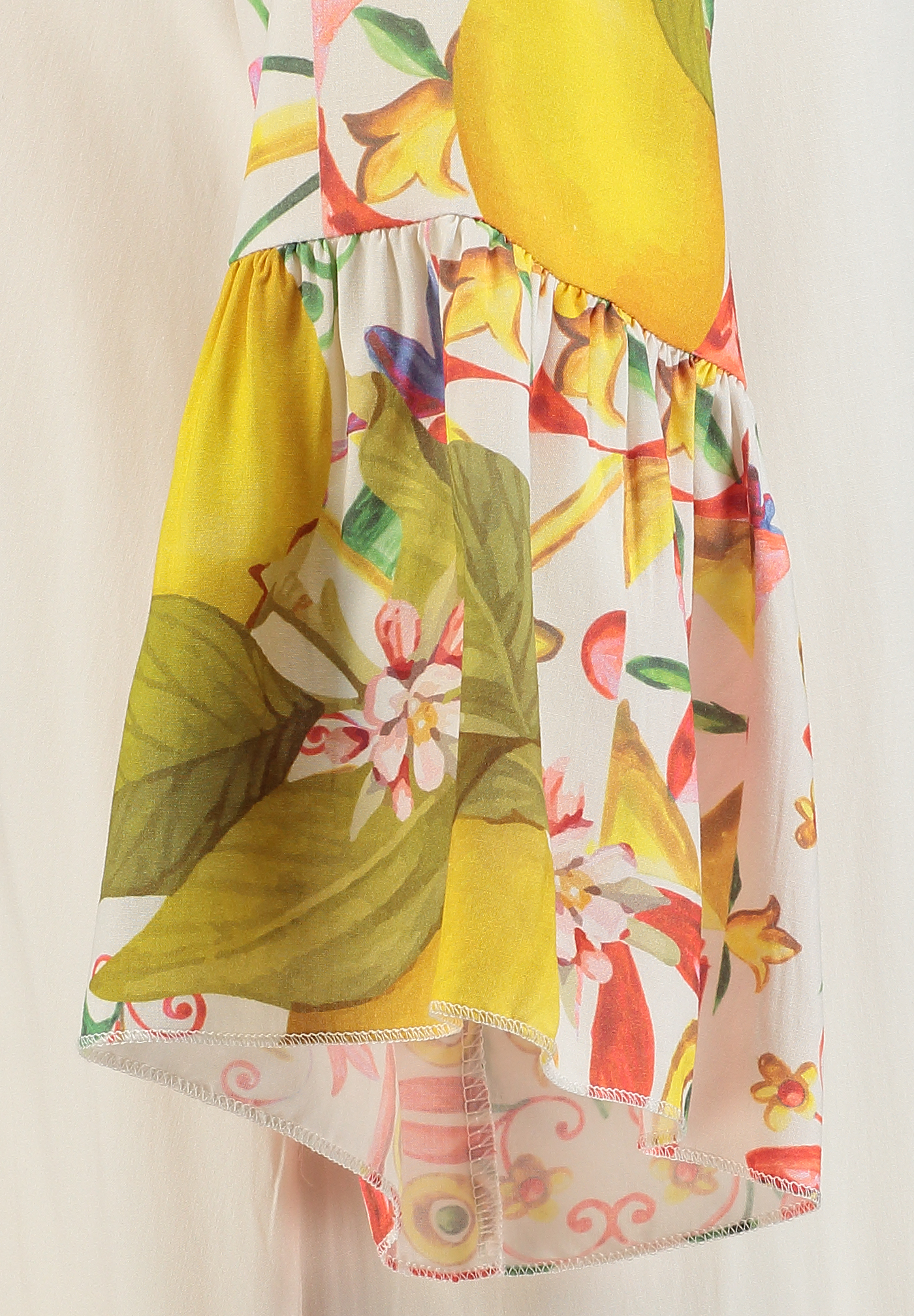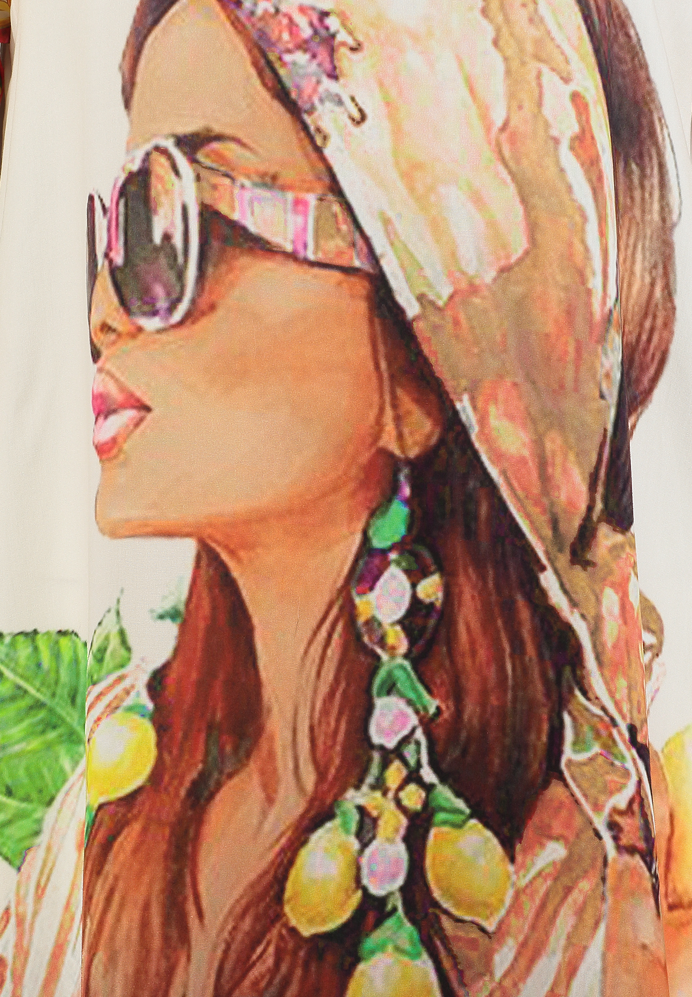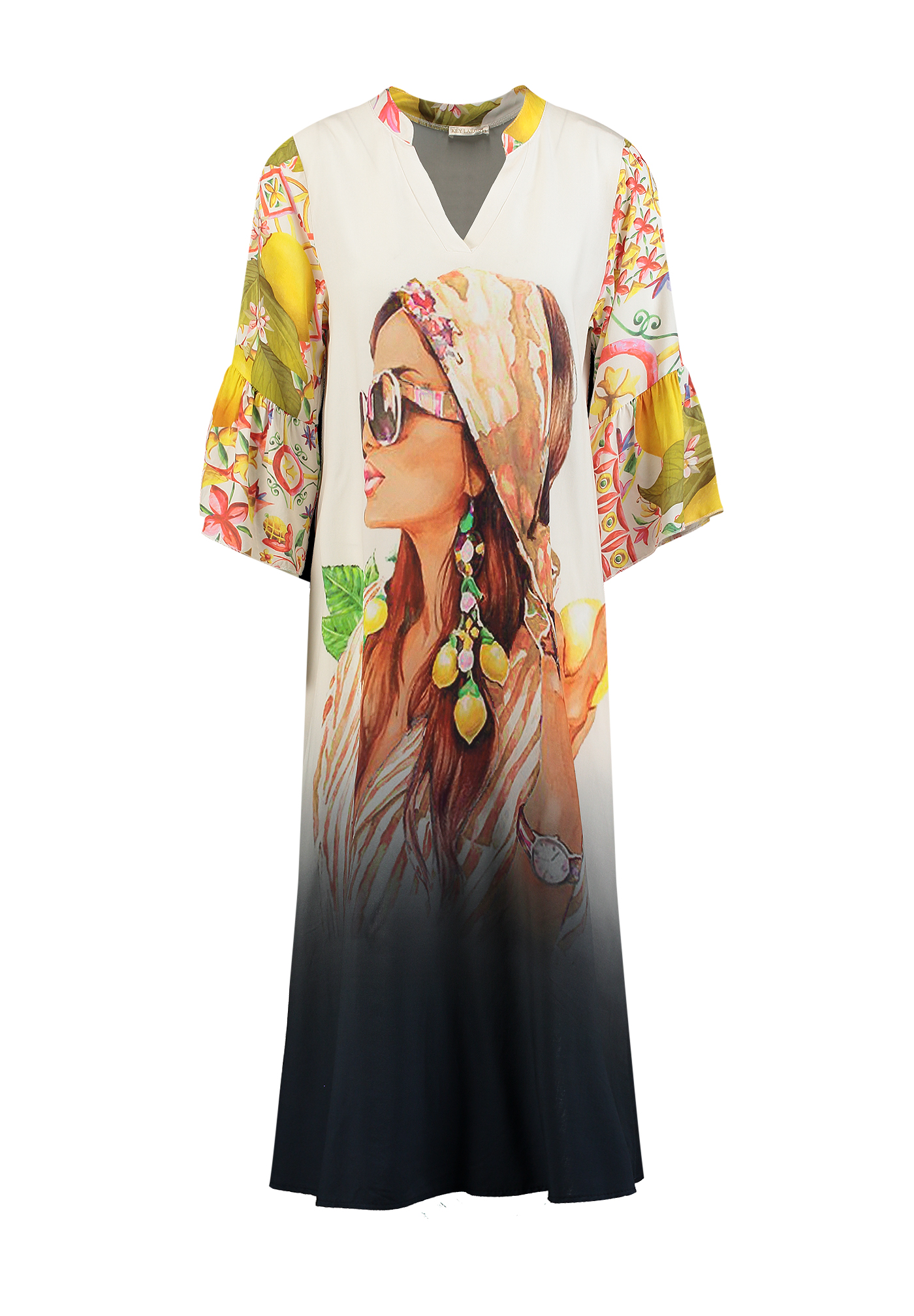 Die Kombination aus kunstvollem Motiv und sanftem Farbverlauf verleiht dem Kleid eine moderne, kreative Ausstrahlung.