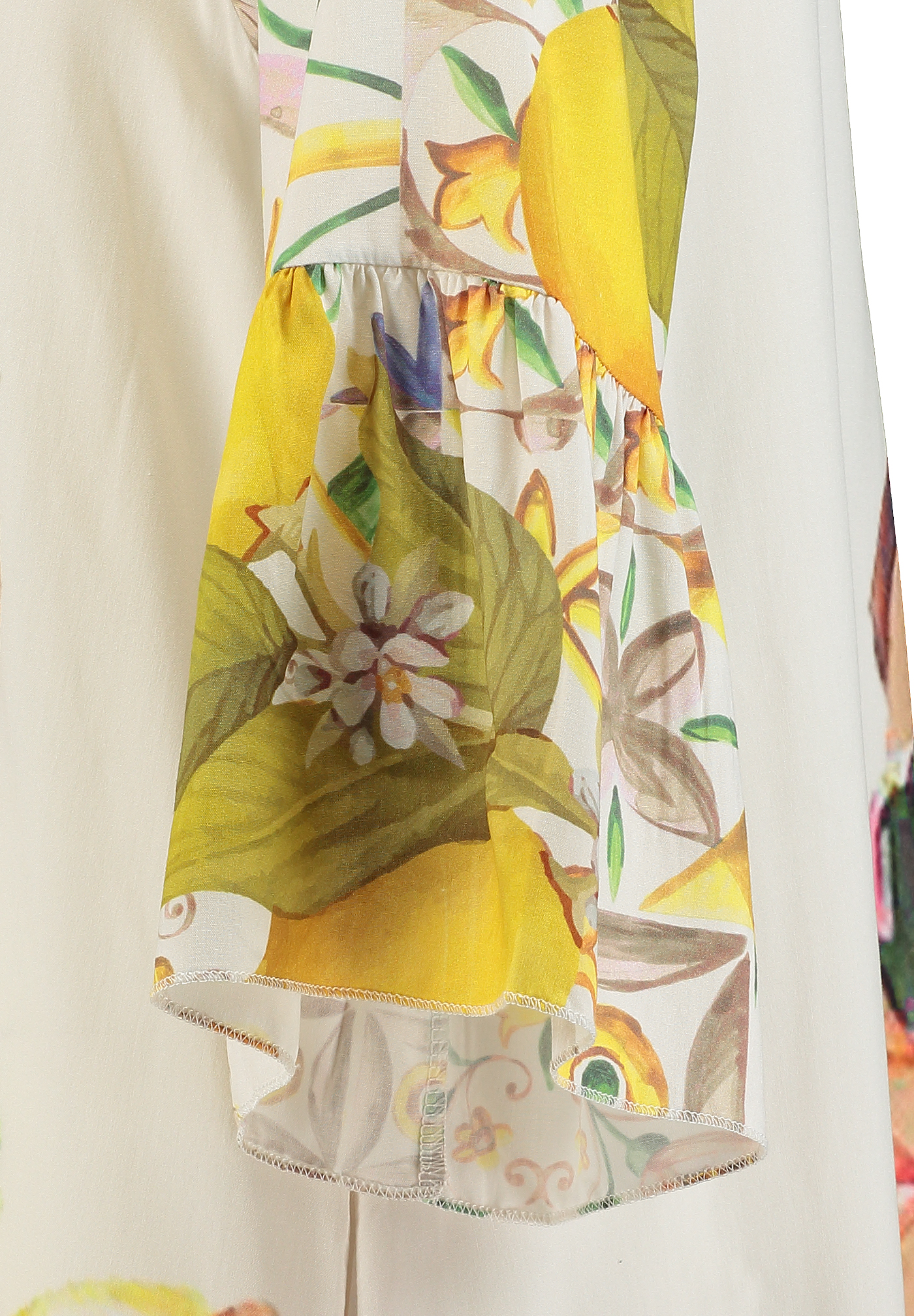 Die Kombination aus kunstvollem Motiv und sanftem Farbverlauf verleiht dem Kleid eine moderne, kreative Ausstrahlung.