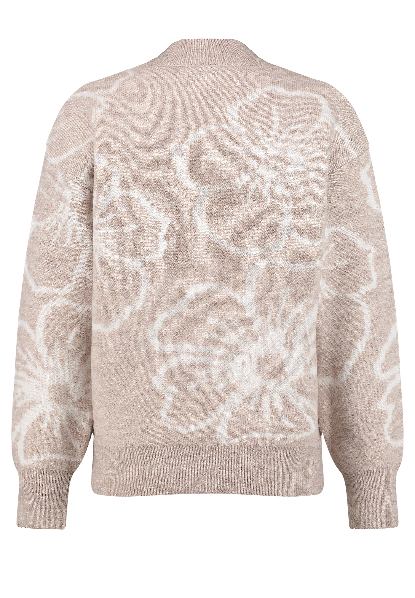 - Große, angedeutete Blüten verleihen dem Pullover grafische Leichtigkeit und visuelle Tiefe