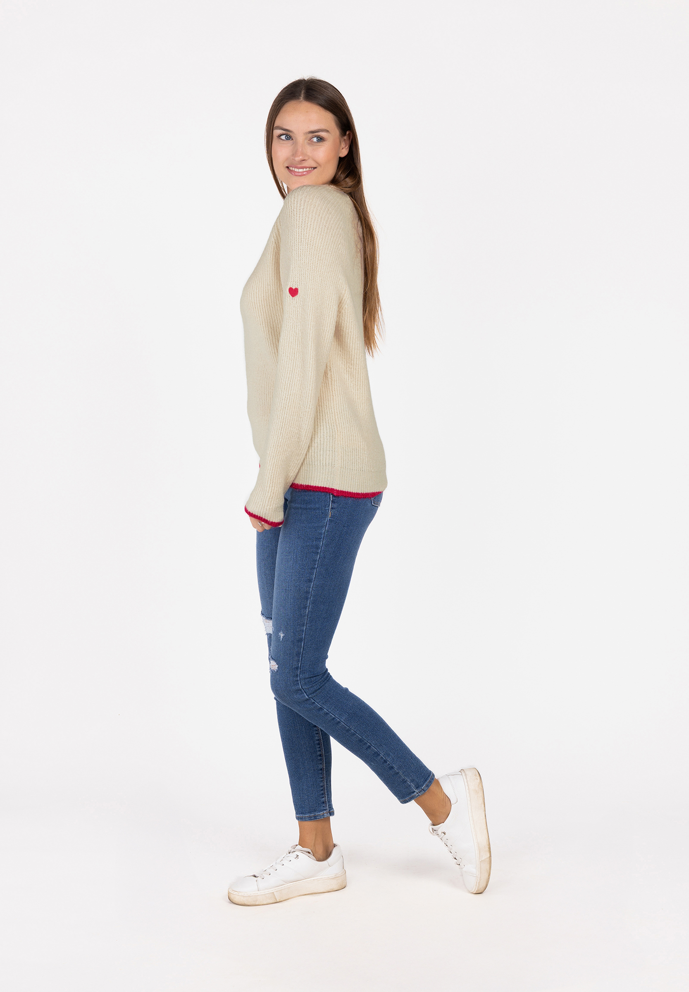Reizender Strickpullover aus dem Hause KEY LARGO® V-Ausschnitt Verliebte Herz-Stickerei... mehr