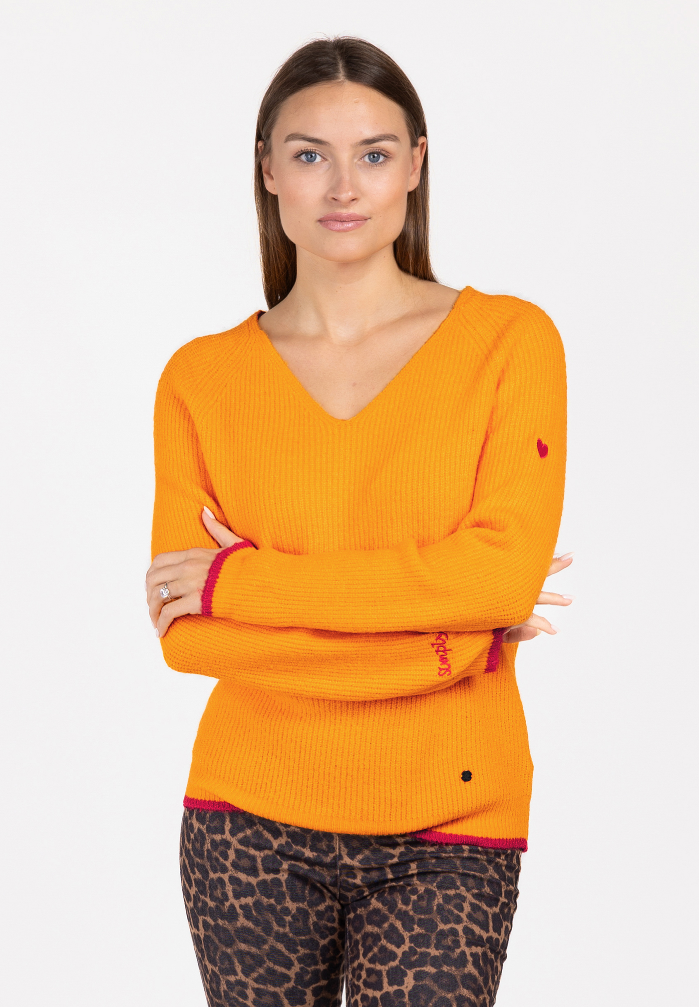 Reizender Strickpullover aus dem Hause KEY LARGO® V-Ausschnitt Verliebte Herz-Stickerei... mehr