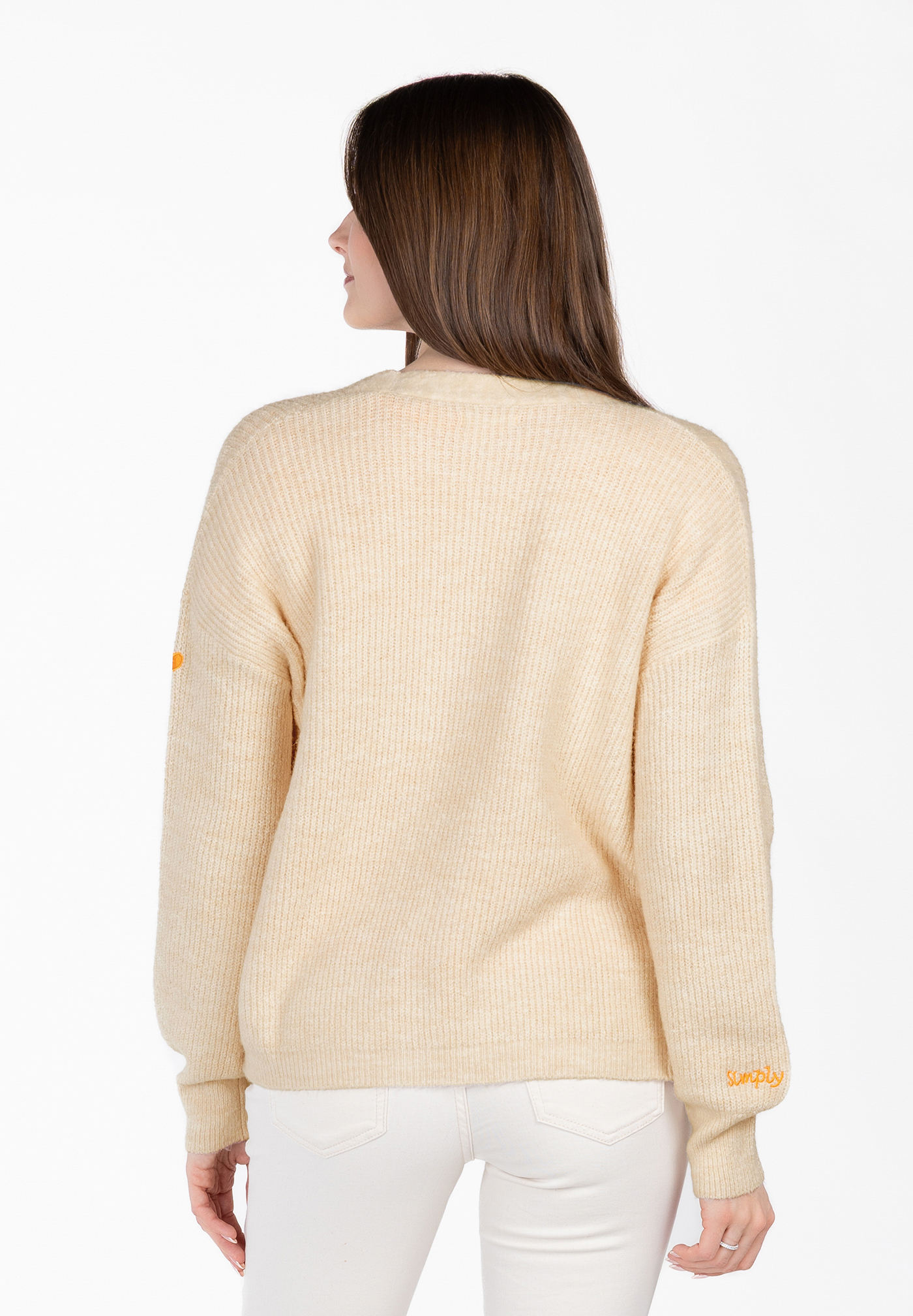 Strickqualität sorgt für ein angenehmes Tragegefühl, während der feminine V-Ausschnitt und die