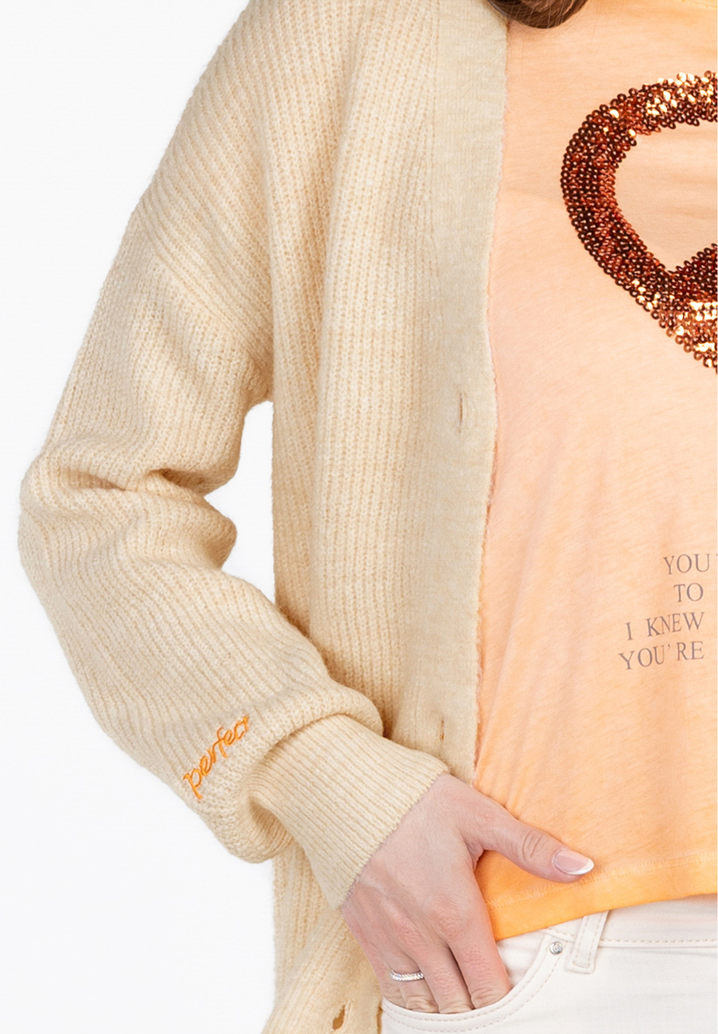 - Feiner Strukturstrick: Verleiht dem Cardigan Tiefe und eine hochwertige Optik.