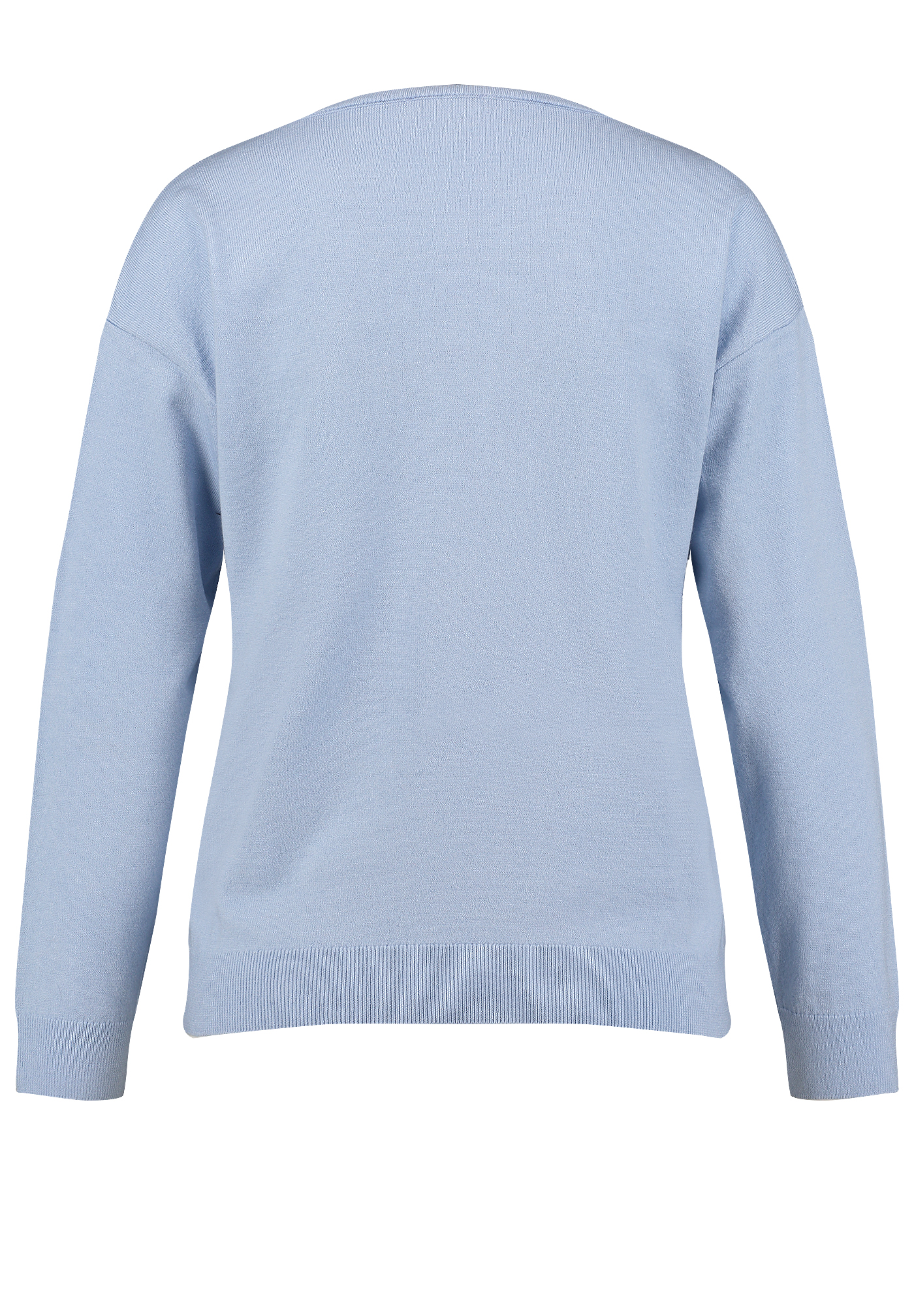Der V-Ausschnitt sorgt für eine schmeichelnde Silhouette und unterstreicht den entspannten Stil des Pullovers