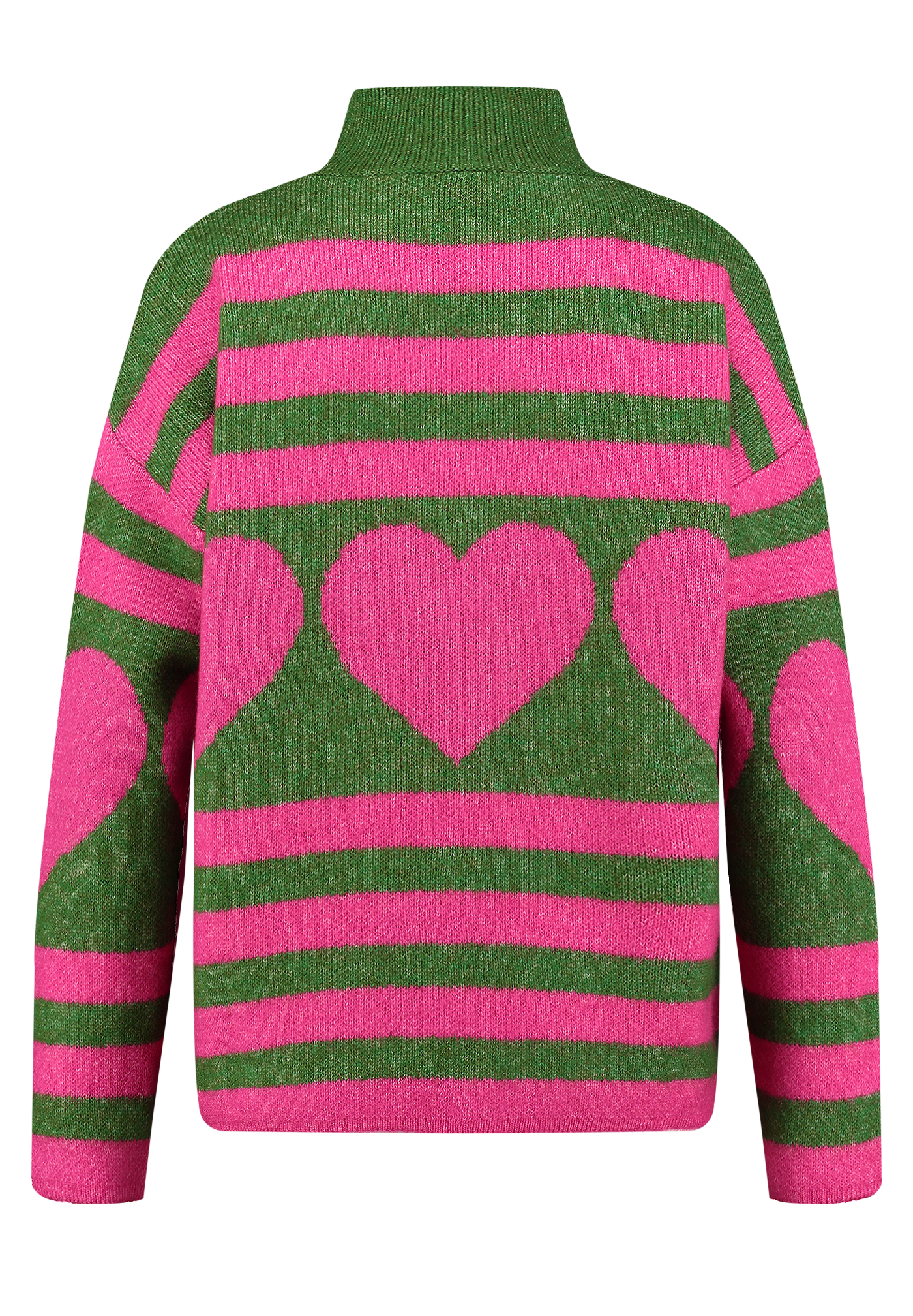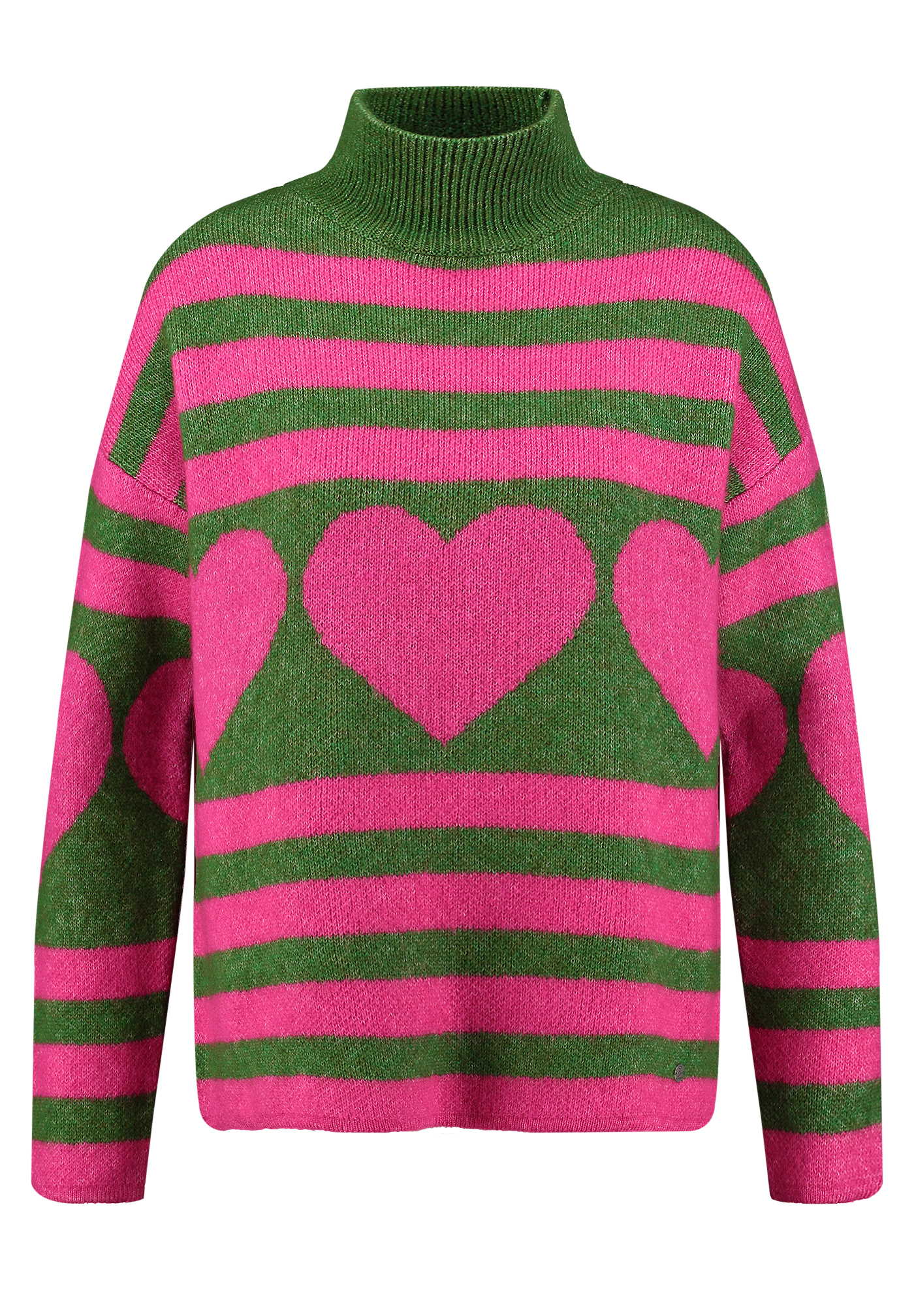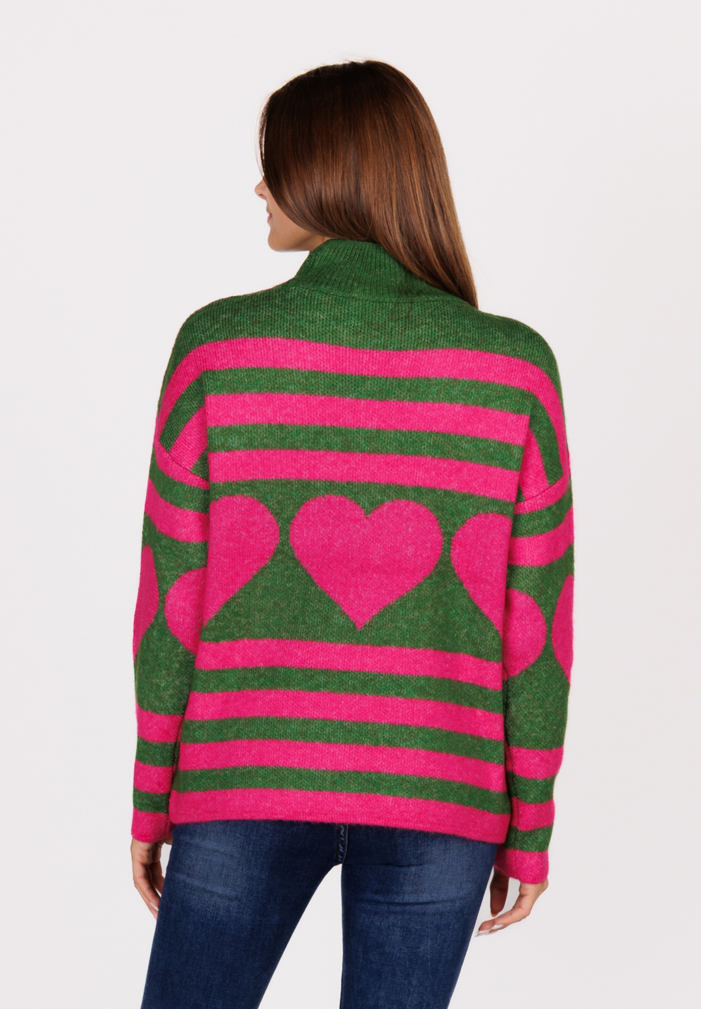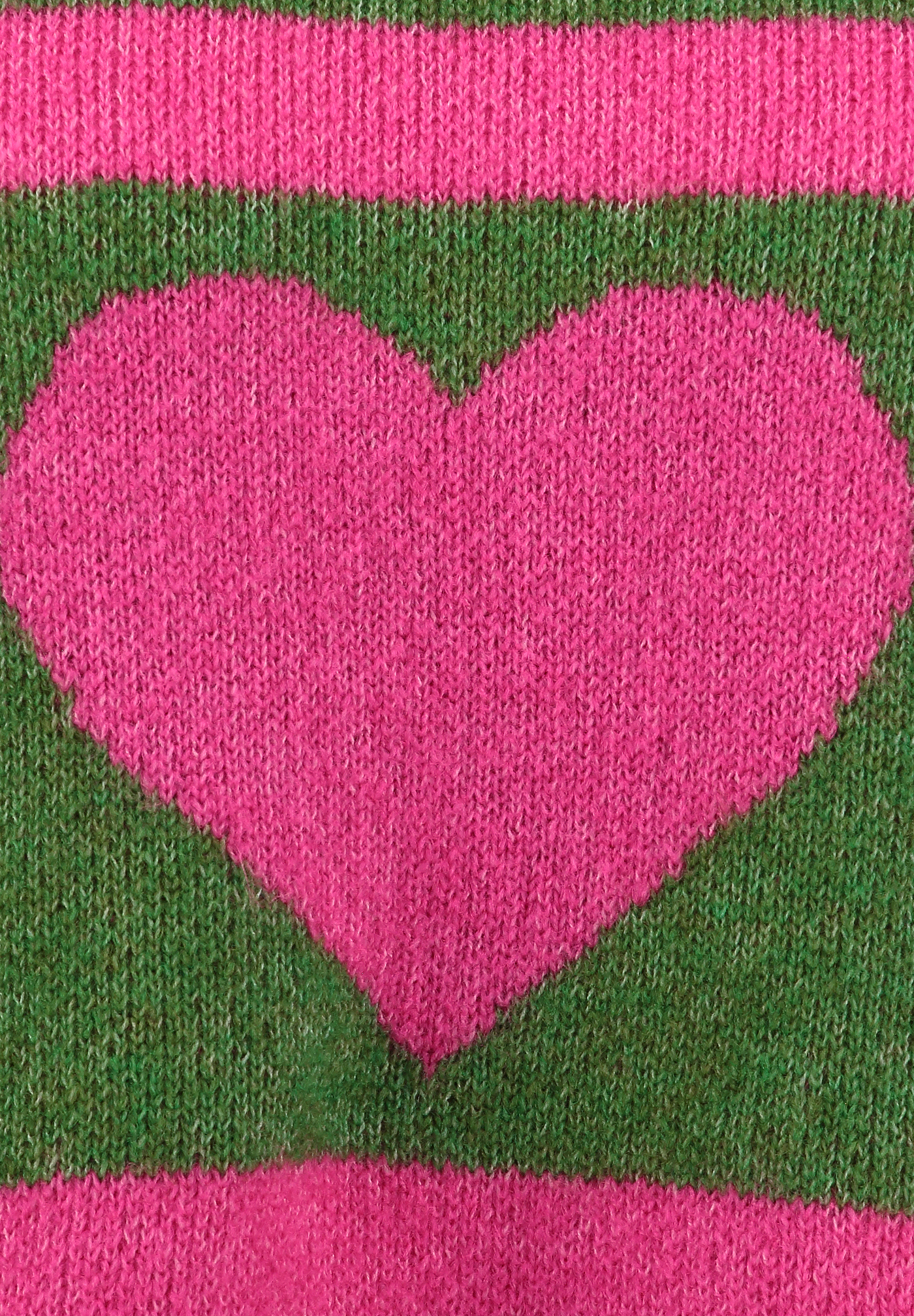 Laut, bunt, liebevoll - mit den plakativ eingestrickten Herzen und dem hohen Tube-Kragen