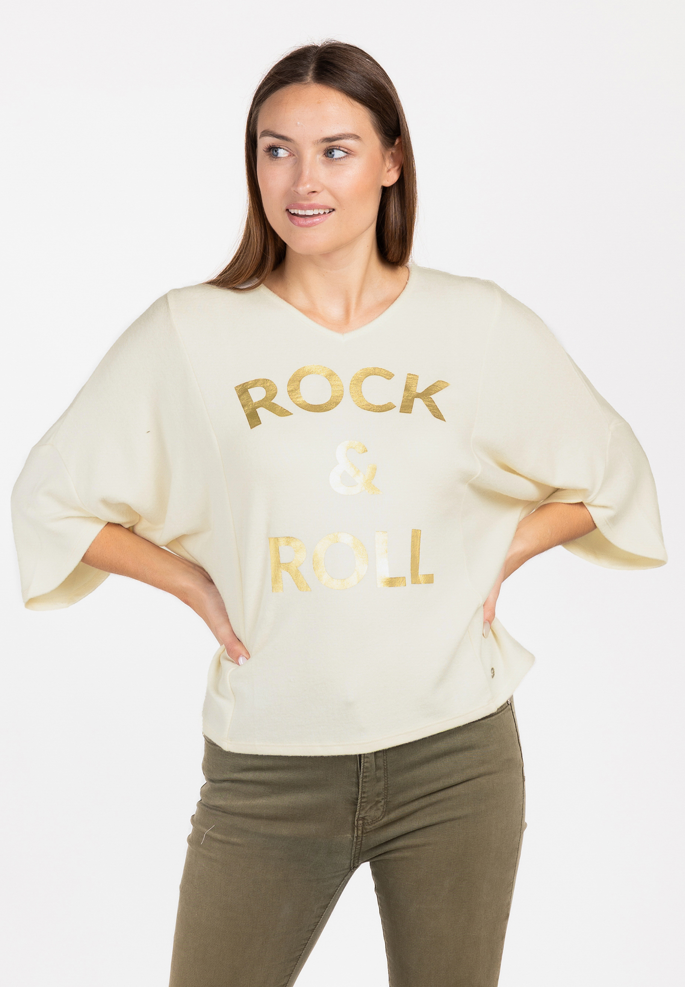 - Der "ROCK & ROLL"-Schriftzug in glänzendem Metallic-Gold zieht alle Blicke auf sich ein echter Bühnenmoment im Alltag.
