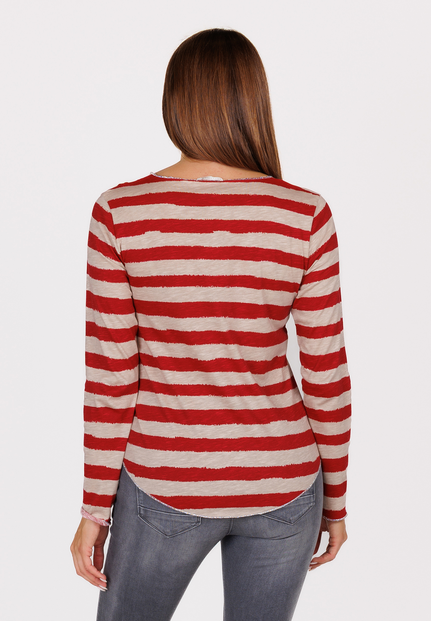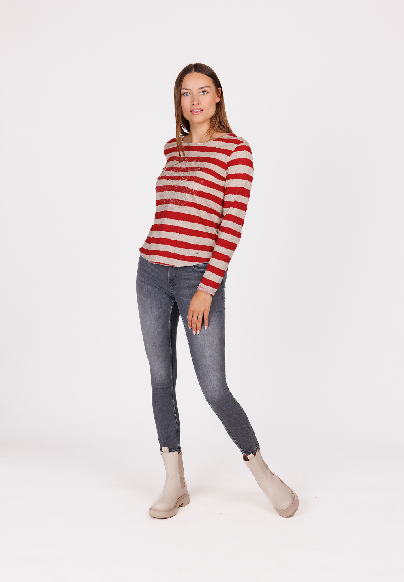 Die klassischen Streifen mit Vintage Flair erinnern an französischen Chic, während die dezente Frontstickerei eine persönliche Note verleiht.
