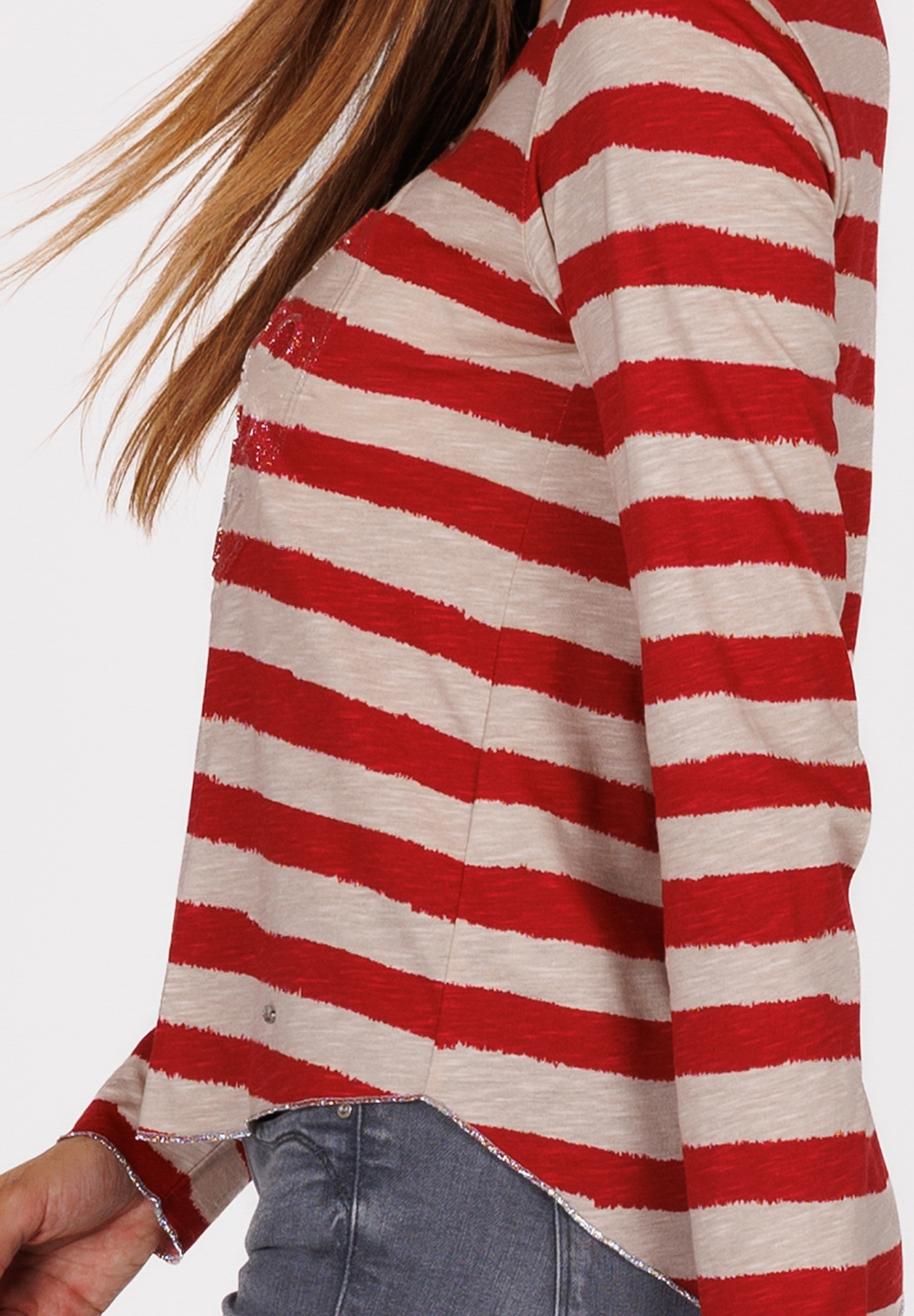 - Die Ton-in-Ton-Verzierung auf der Front macht den Look spannend, aber nicht laut
