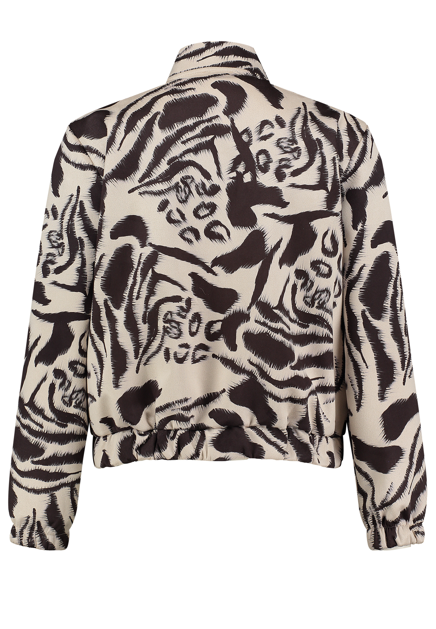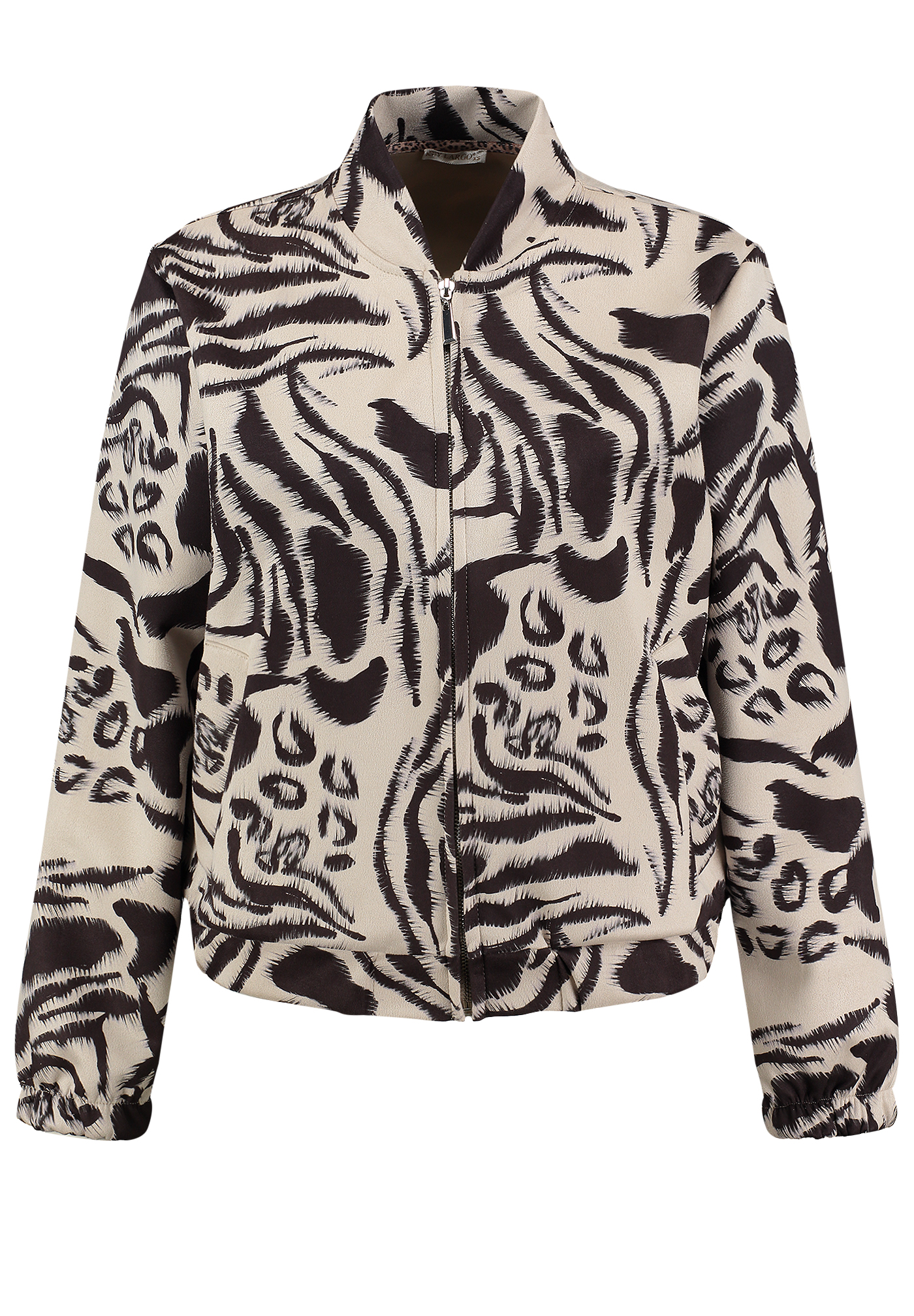 - Auffälliges Design: Damen Bomberjacke mit modernem Zebra-/Animal-Print in Beige und Bordeaux.