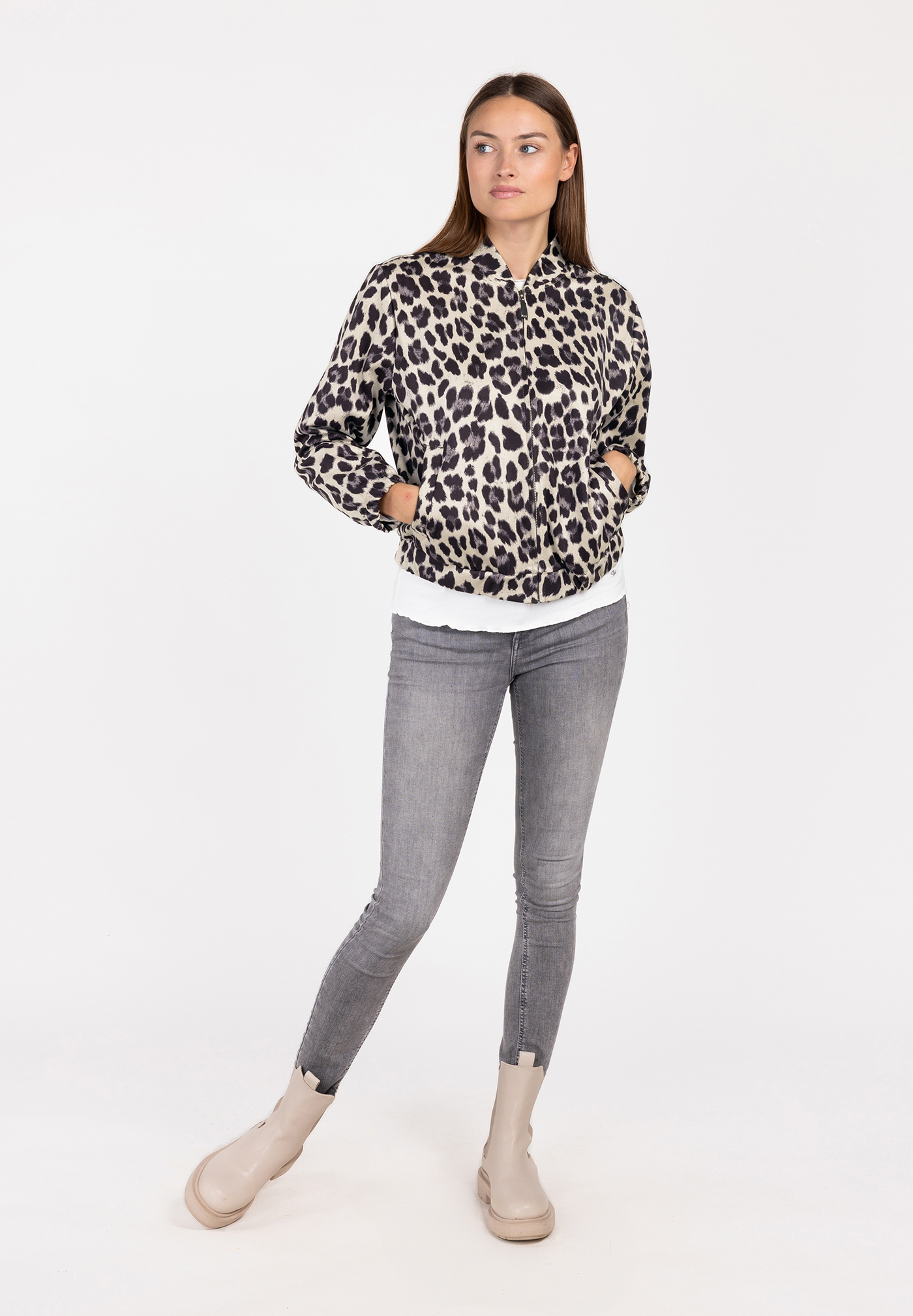 Das auffällige Animal Print Design macht die Jacke zu einem echten Blickfang, während der lässige
