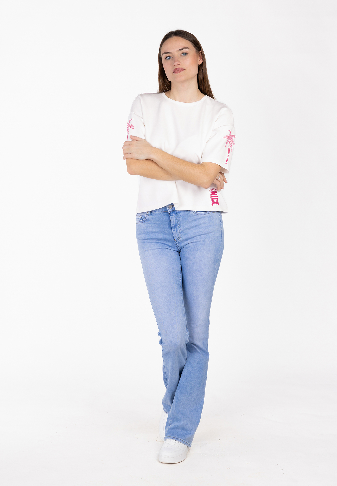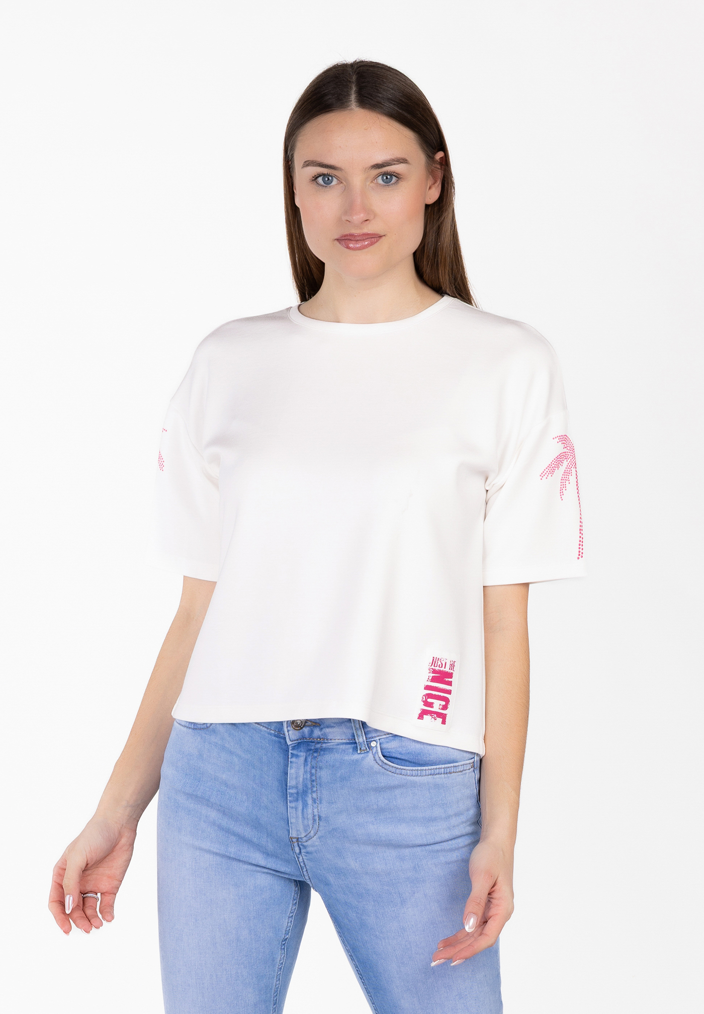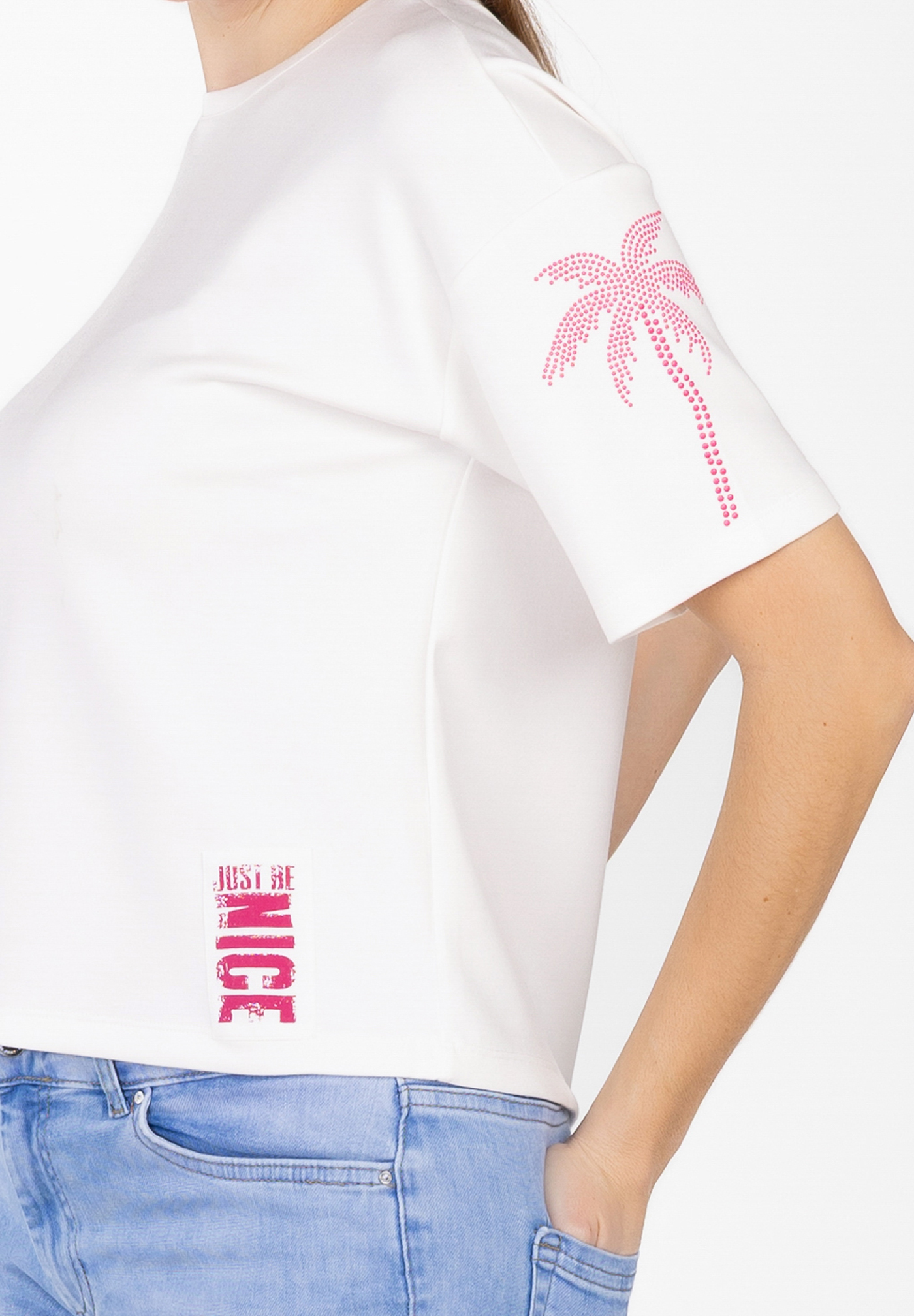 - Vertikaler NICE- Label am Saum: Trendiger, urbaner Touch, der dem Shirt eine coole Streetstyle-Note verleiht.