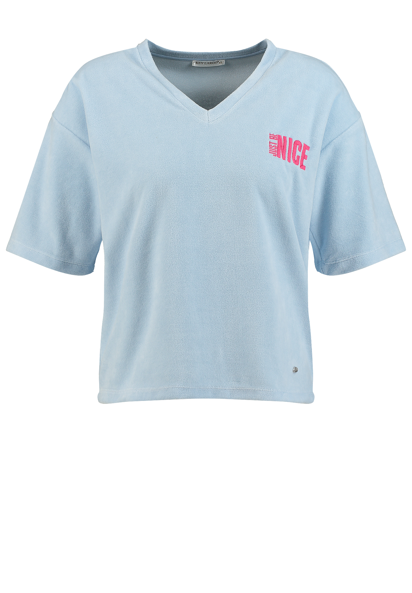 Der feminine V-Ausschnitt rundet das Design ab und sorgt für eine moderne, lockere Silhouette.